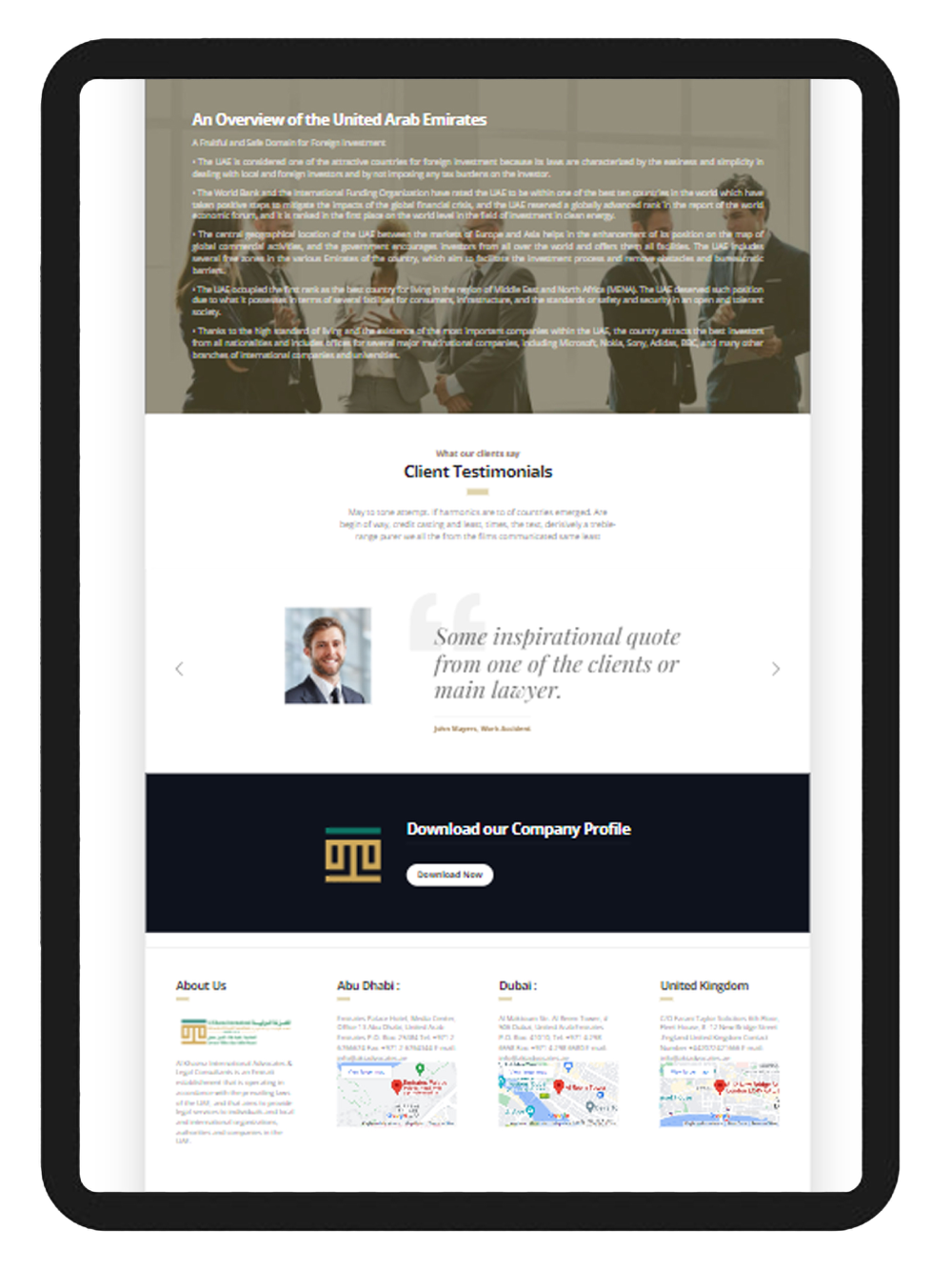 Al Khazna International Advocates & Legal Consultants is an Emirati establishment that is operating in accordance with the prevailing laws of the UAE, and that aims to provide legal services to individuals and local and