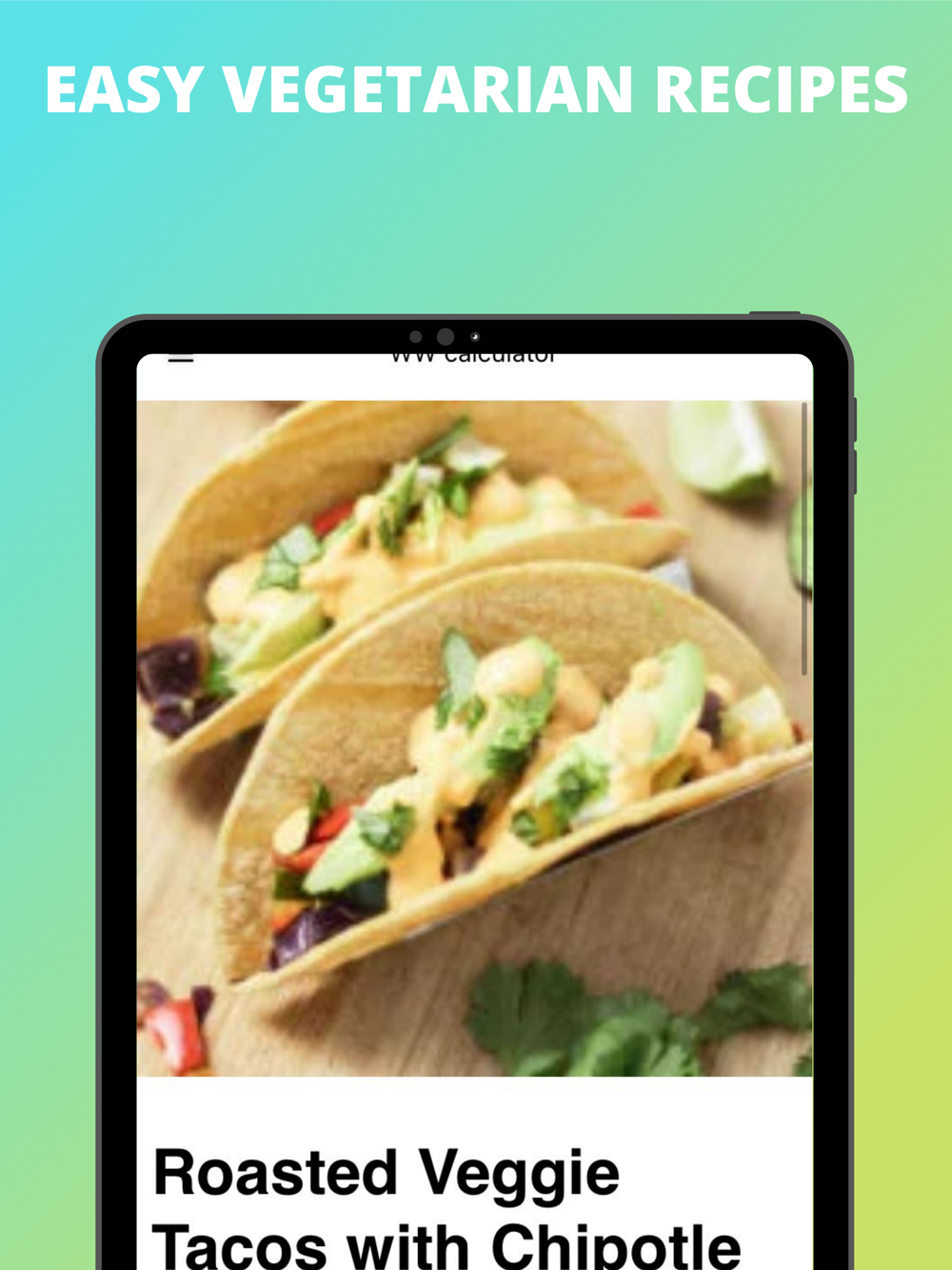 Our healthy vegetarian recipe app gives you lots of free cooking recipes for soup, salad, tacos, etc. Now that you've our app, you no longer need to carry around bulky recipe books.