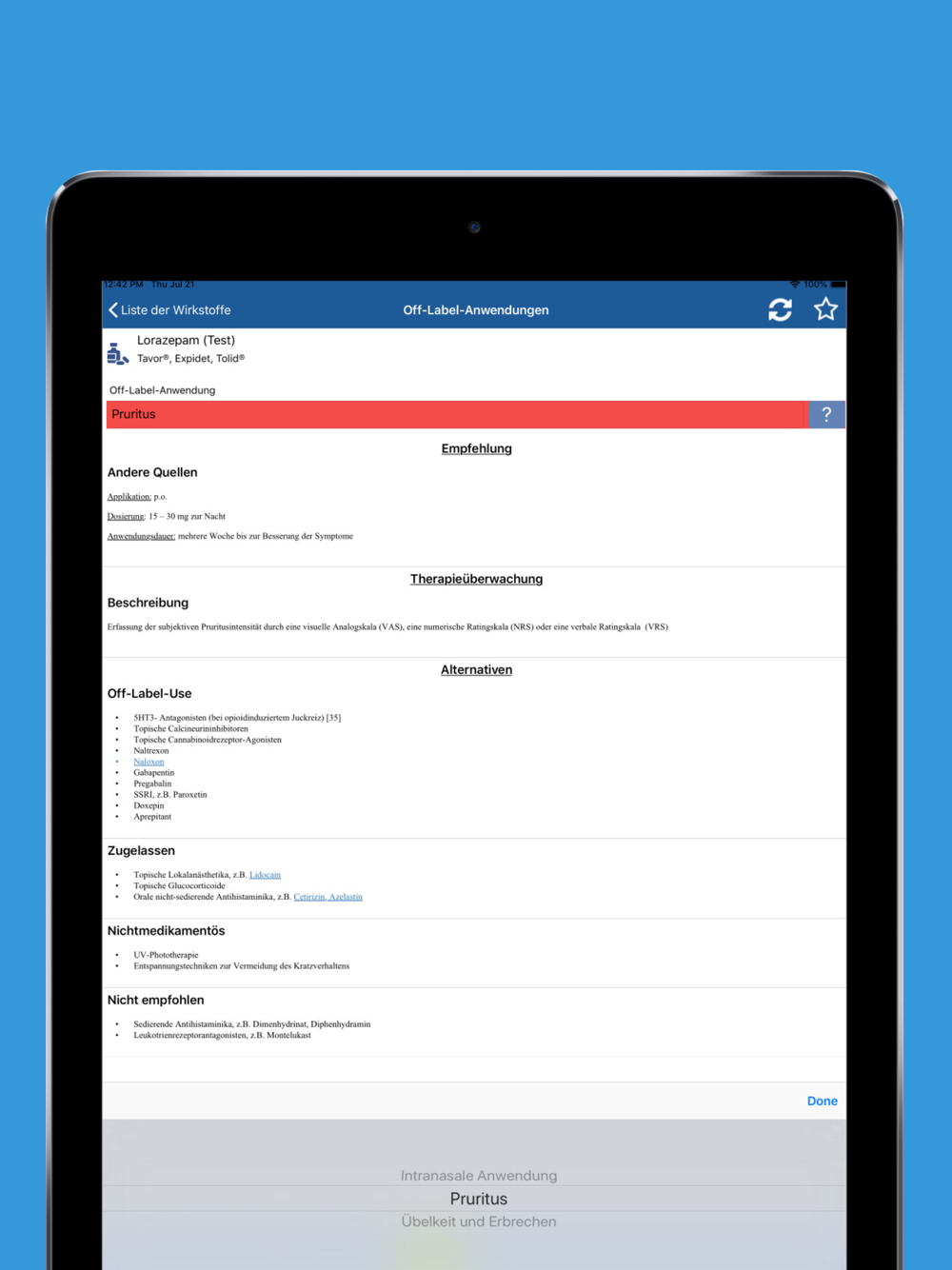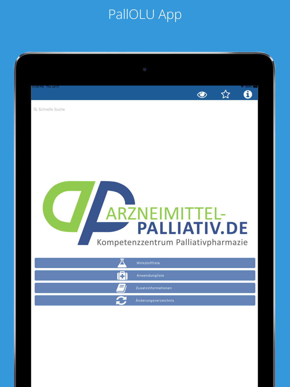 pall-OLU richtet sich an medizinisches, pharmazeutisches und pflegerisches Fachpersonal, das eine Entscheidungshilfe für den Off-Label-Einsatz von Arzneimitteln sucht. Diese App bietet konkrete Therapieempfehlungen zu ausgewählten Wirkstoffen, deren Applikationsformen und Indikationen. Die Empfehlungen basieren auf der besten verfügbaren Evidenz, ermittelt durch systematische Literaturrecherche, geprüft und konsentiert von unabhängigen, palliativmedizinisch tätigen Expert:innen. Zusätzlich weißt die App auf alternative medikamentöse und nicht-medikamentöse Therapiemöglichkeiten hin, nennt Überwachungsparameter für die Therapien und informiert über die jeweils häufigsten Symptome, die in der Palliativversorgung auftreten.