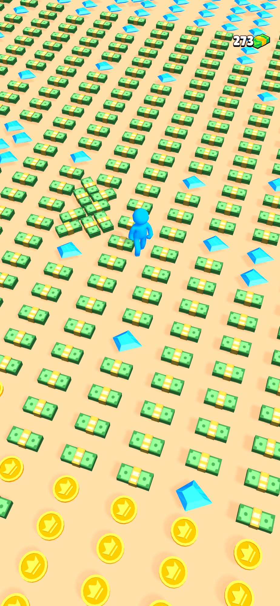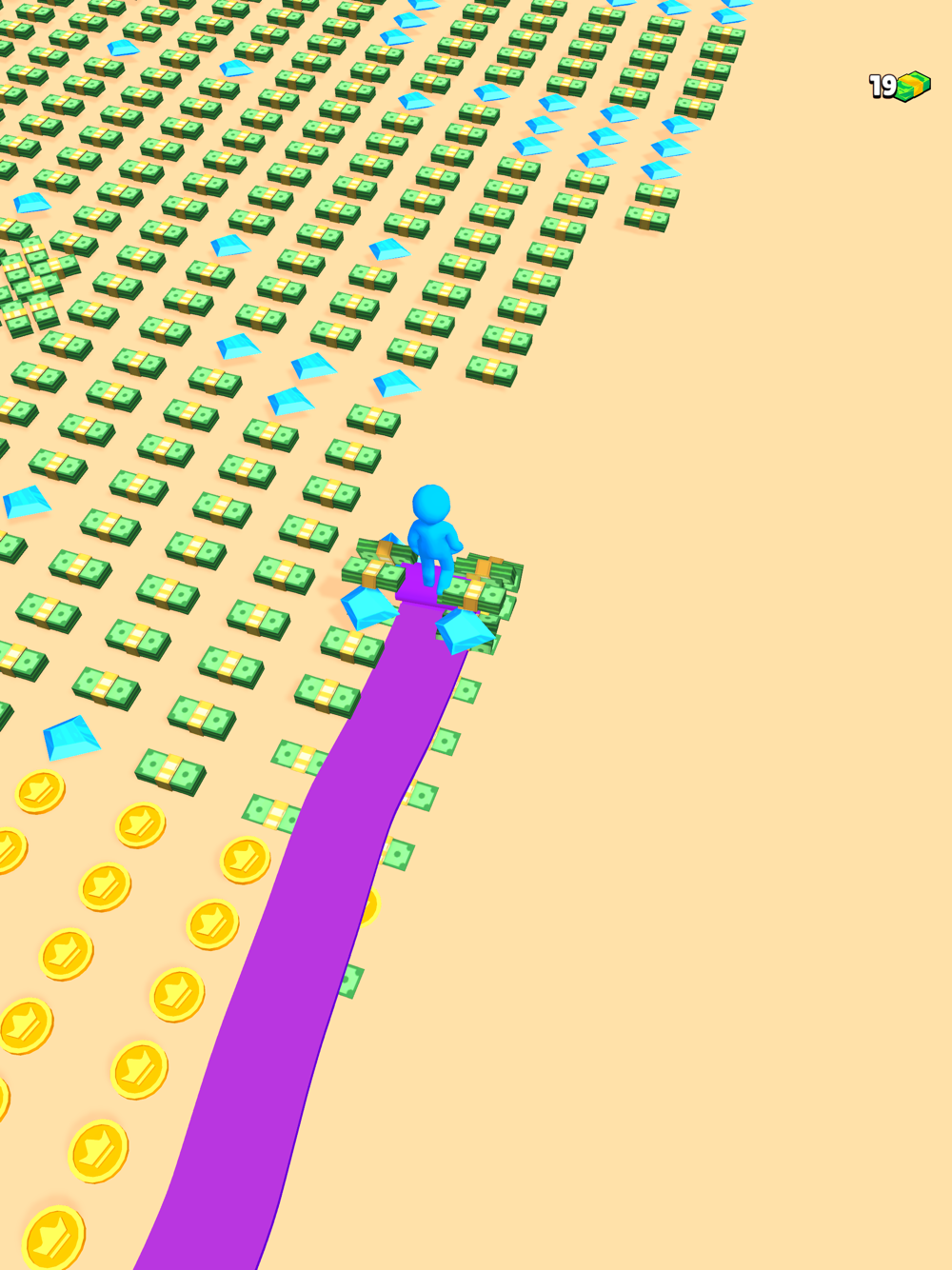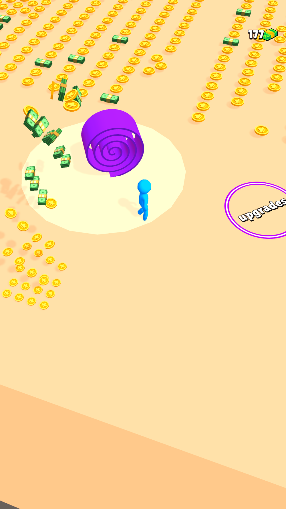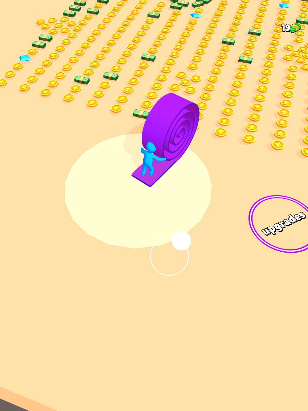You have a folded sticky roll and all you have to do is pushing it over to valuable things !! Like money, coins, diamonds and more. Grap as much as you can, that way you can upgrade your roll. You can make it longer, you can make it wider and you can make it faster !! Push your roll all over the place and try to collect them all !!
