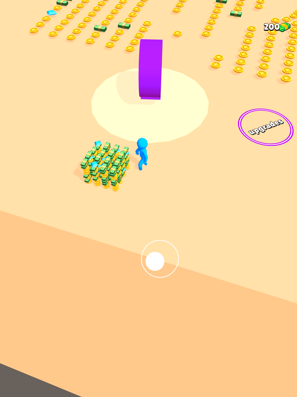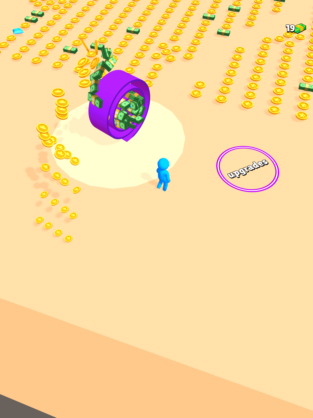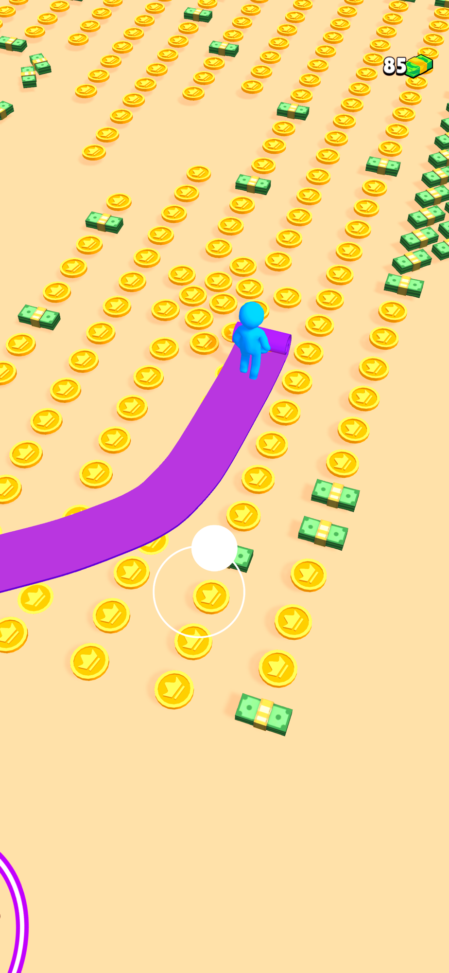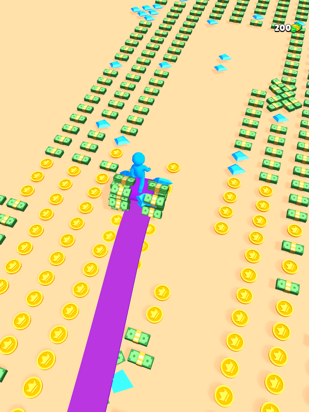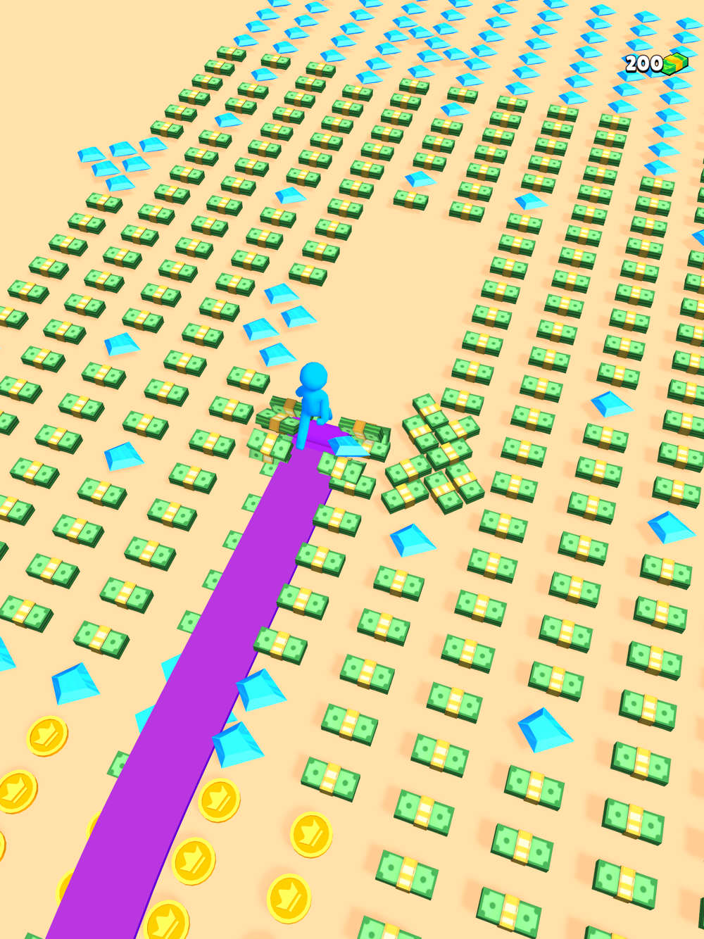 You have a folded sticky roll and all you have to do is pushing it over to valuable things !! Like money, coins, diamonds and more. Grap as much as you can, that way you can upgrade your roll. You can make it longer, you can make it wider and you can make it faster !! Push your roll all over the place and try to collect them all !!