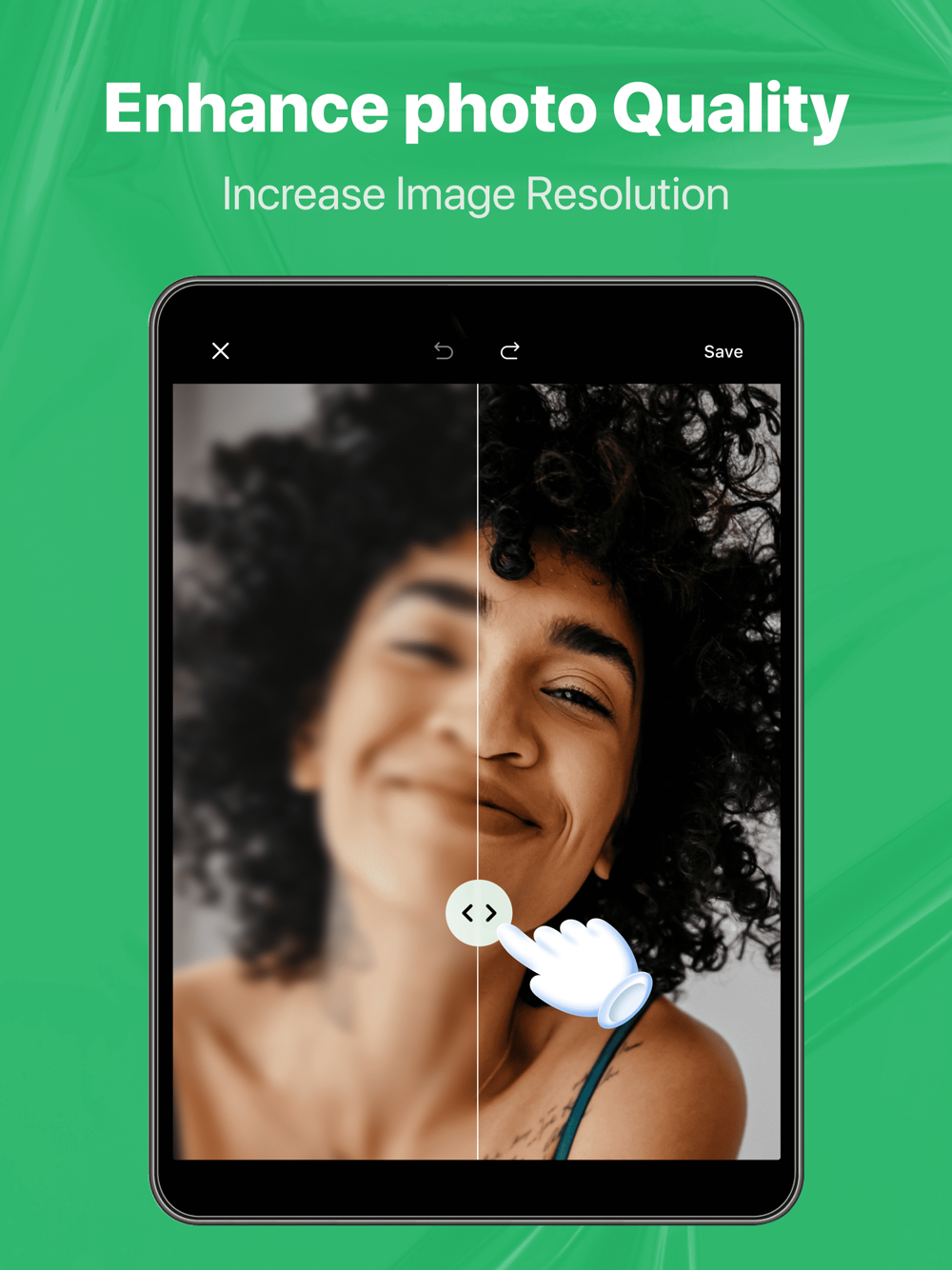 • Clears blurry pictures taken by old cameras/phones, increases image resolution to high-definition.