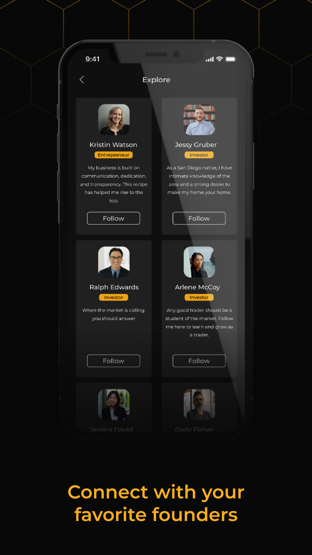 HIIVE is a mobile app that provides a thriving virtual space where entrepreneurs can grow their professional network with inspiring, like-minded individuals and access a powerful global database of investors. In addition, Investors can connect with the most promising startups, chat directly with their founders and finance the best ideas.