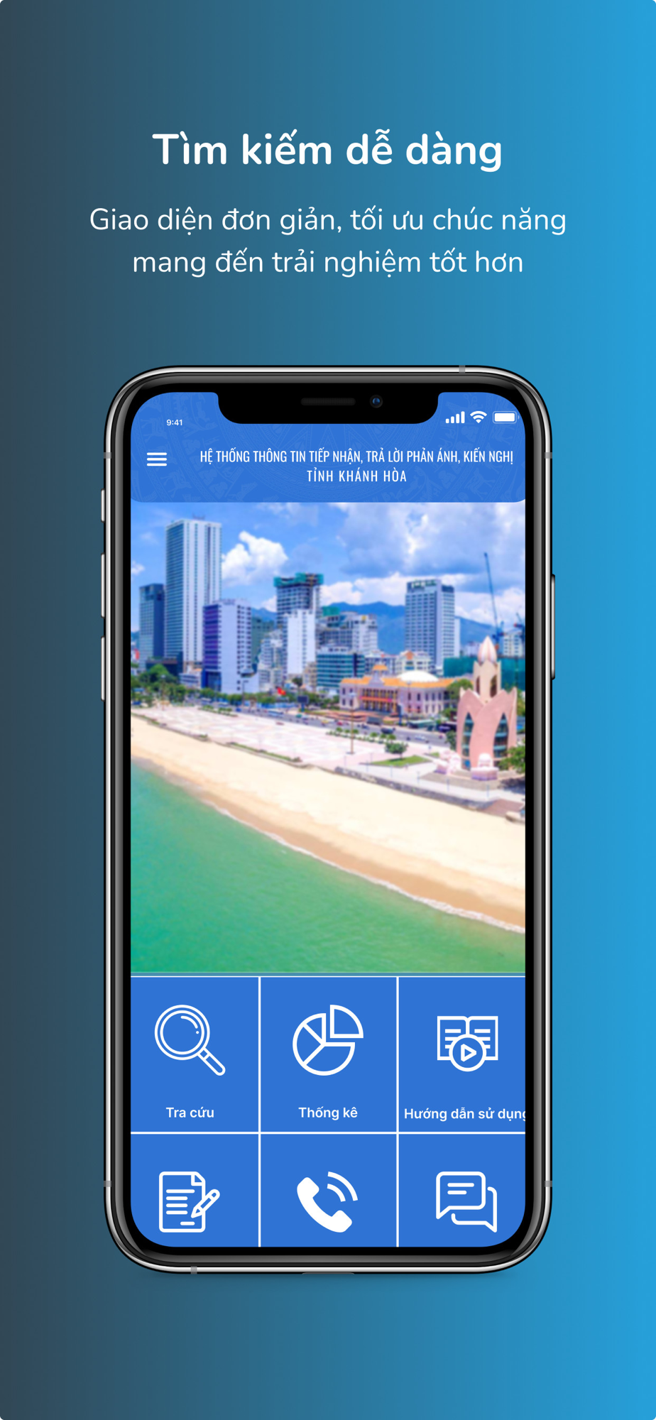Hệ thống thông tin tiếp nhận, trả lời phản ánh, kiến nghị của người dân, doanh nghiệp về KT-XH tỉnh Khánh Hòa là công cụ để hỗ trợ tương tác giữa chính quyền với người dân, doanh nghiệp và khách du lịch. Giúp người dân, doanh nghiệp gửi phản ánh về các lĩnh vực kinh tế - xã hội và theo dõi kết quả xử lý, trả lời của các cơ quan chức năng thông qua ứng dụng