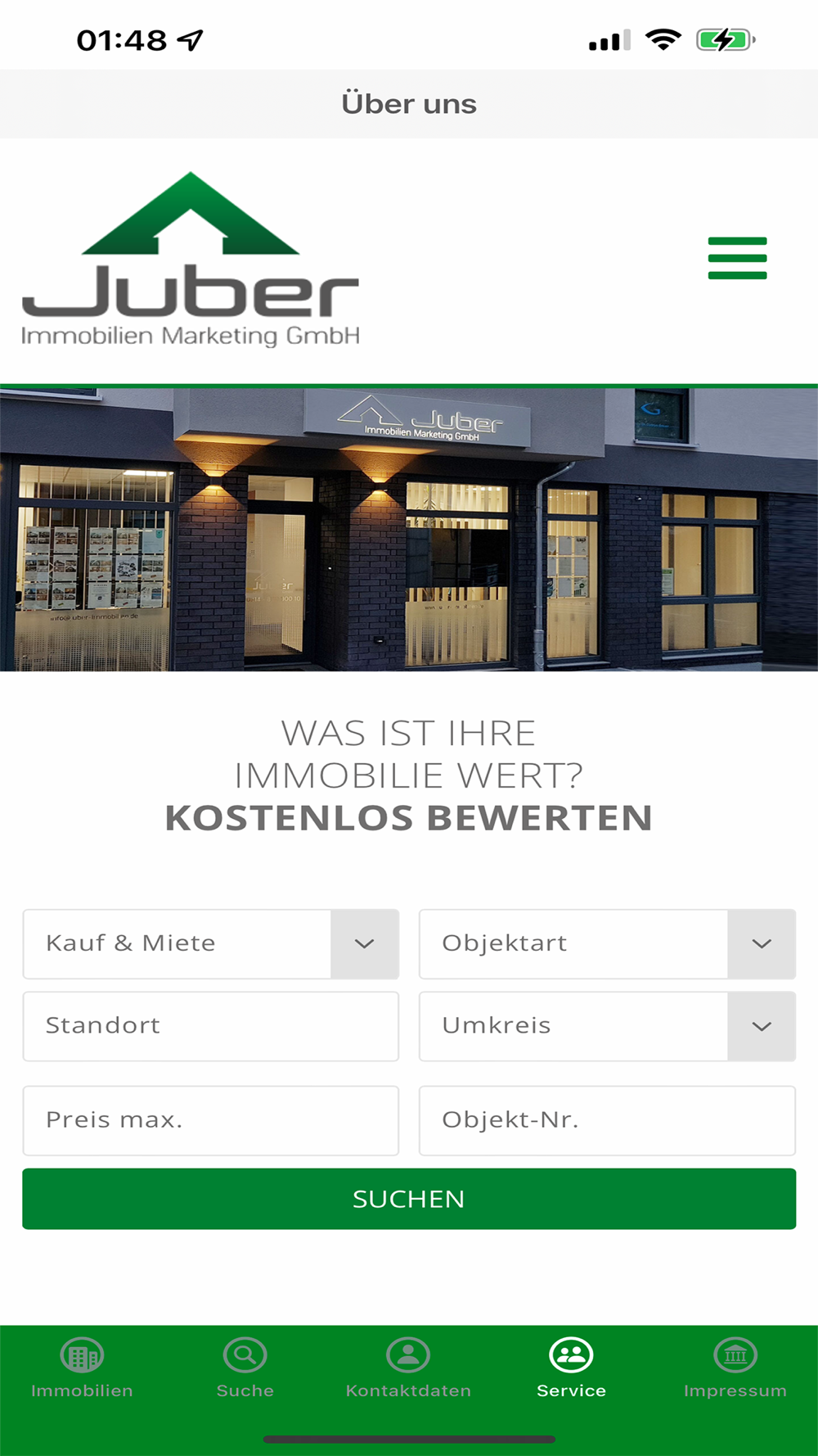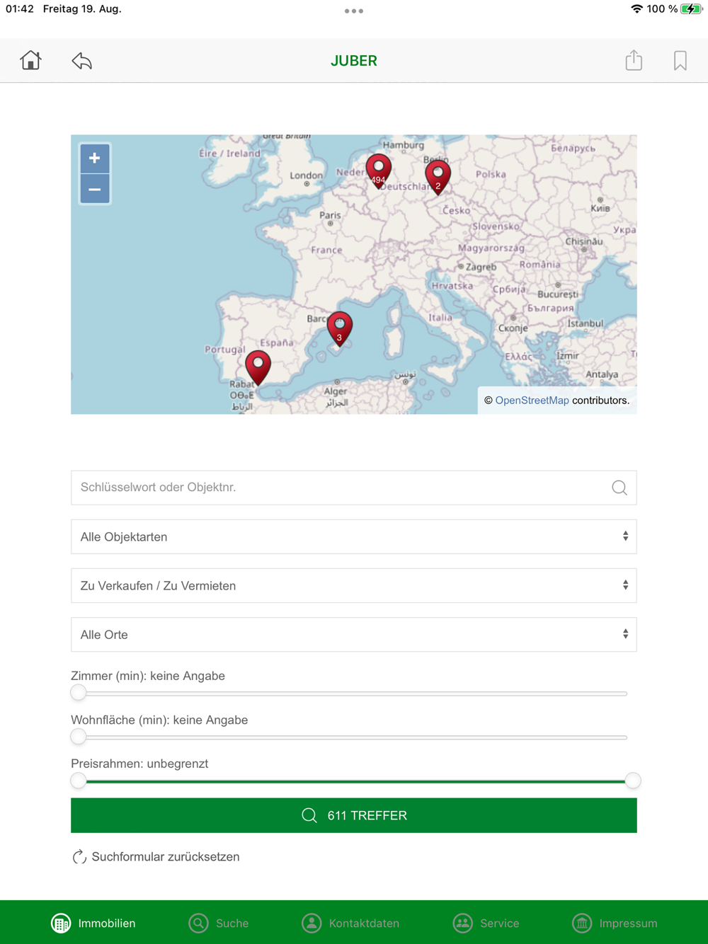 Mit der kostenlosen Juber-App haben Sie Zugriff unseren gesamten Angebotsbestand. Sie können beliebig viele Suchprofile hinterlegen.