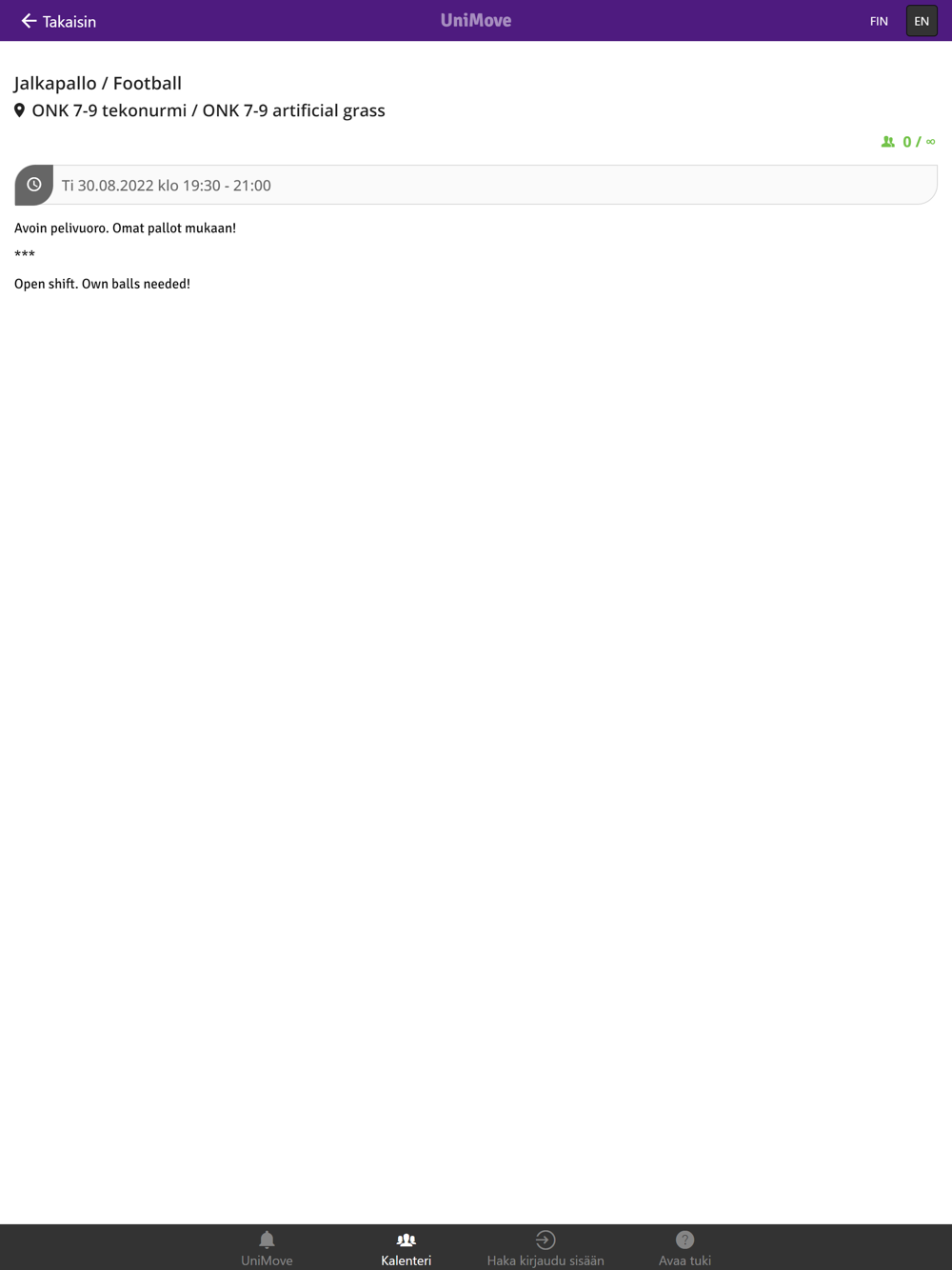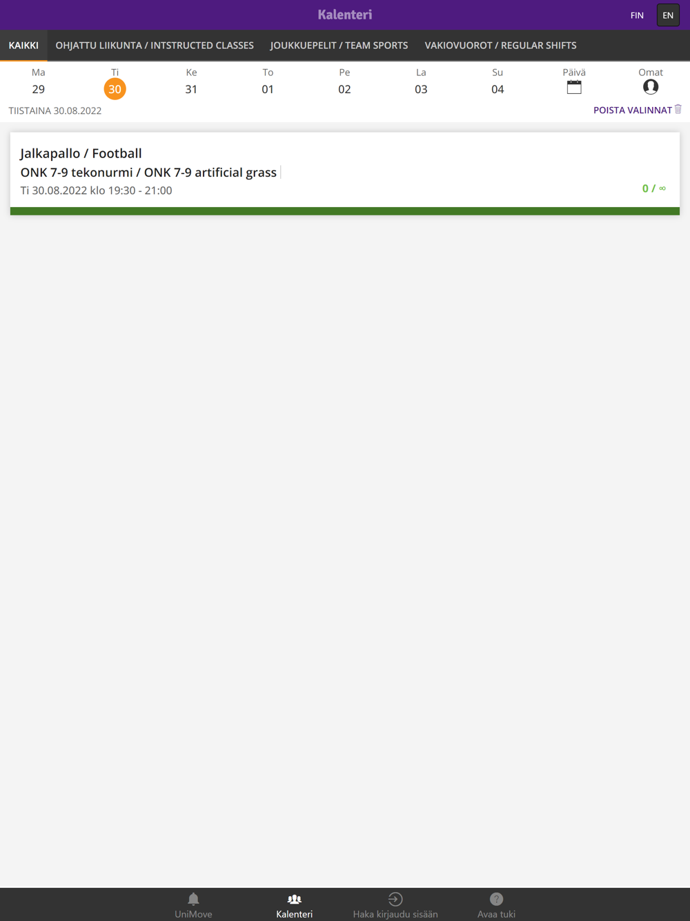 - tapahtumiin ilmoittautuminen ja tuntivaraukset