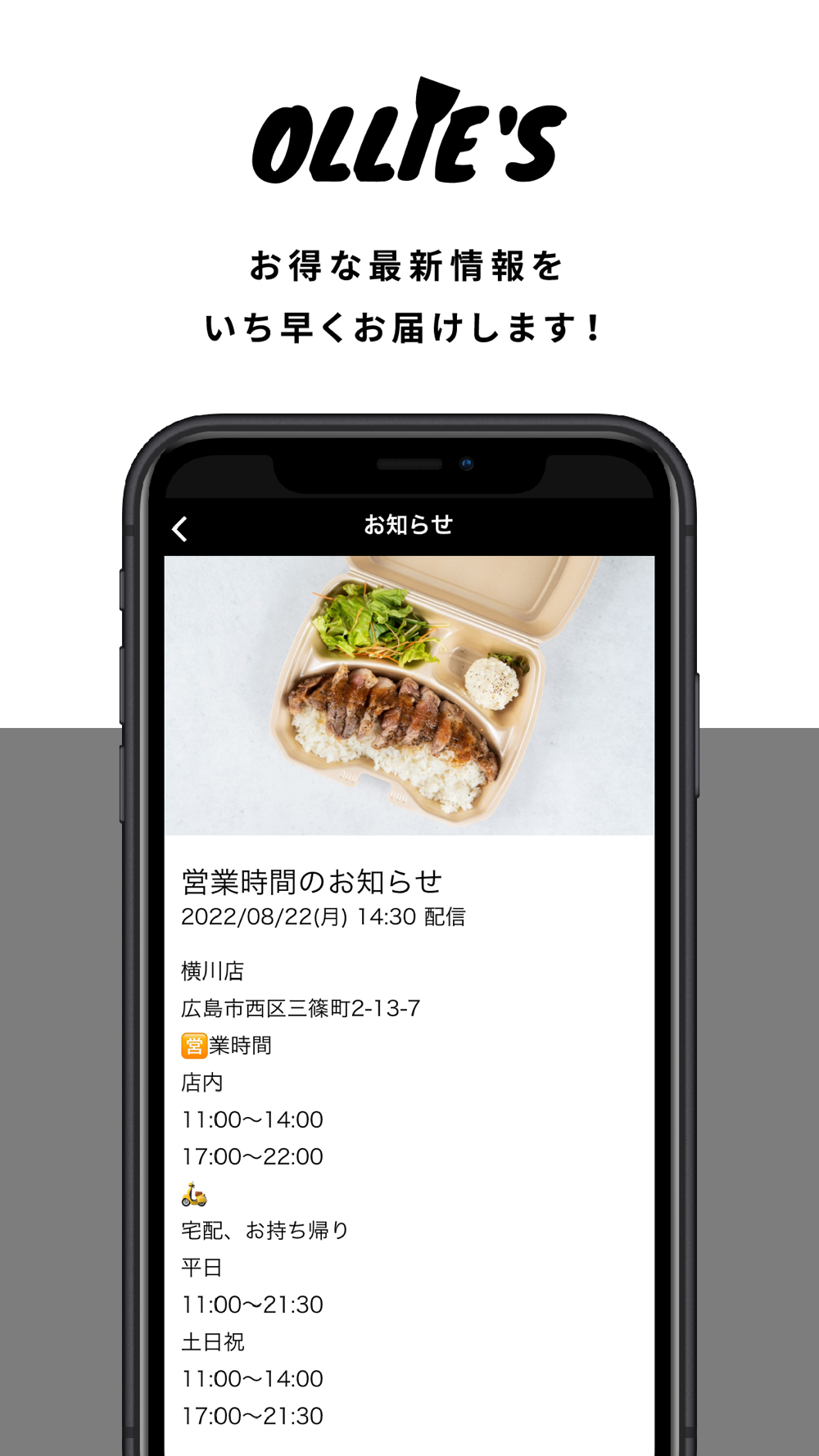 「OLLIE’S」の最新情報やお得なイベントなどのお知らせが届くとプッシュ通知でいち早く確認することができます。