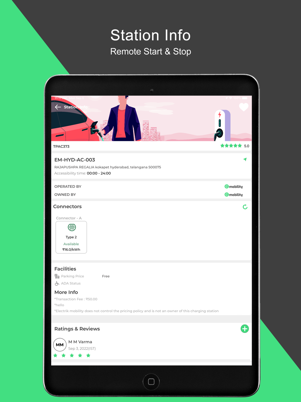 E-Mobility Charging Mobile Application allows users to locate and navigate to the nearest charging stations and complete a paperless charging session. Become a member, access, and edit your account (including your profile and billing information), request RFID cards, and receive charging status notifications. Contact our 24x7 Customer Support team to Report a station issue directly from the Mobile app with the ability to provide a description and pictures. We give you complete control and visibility to your charging activity!