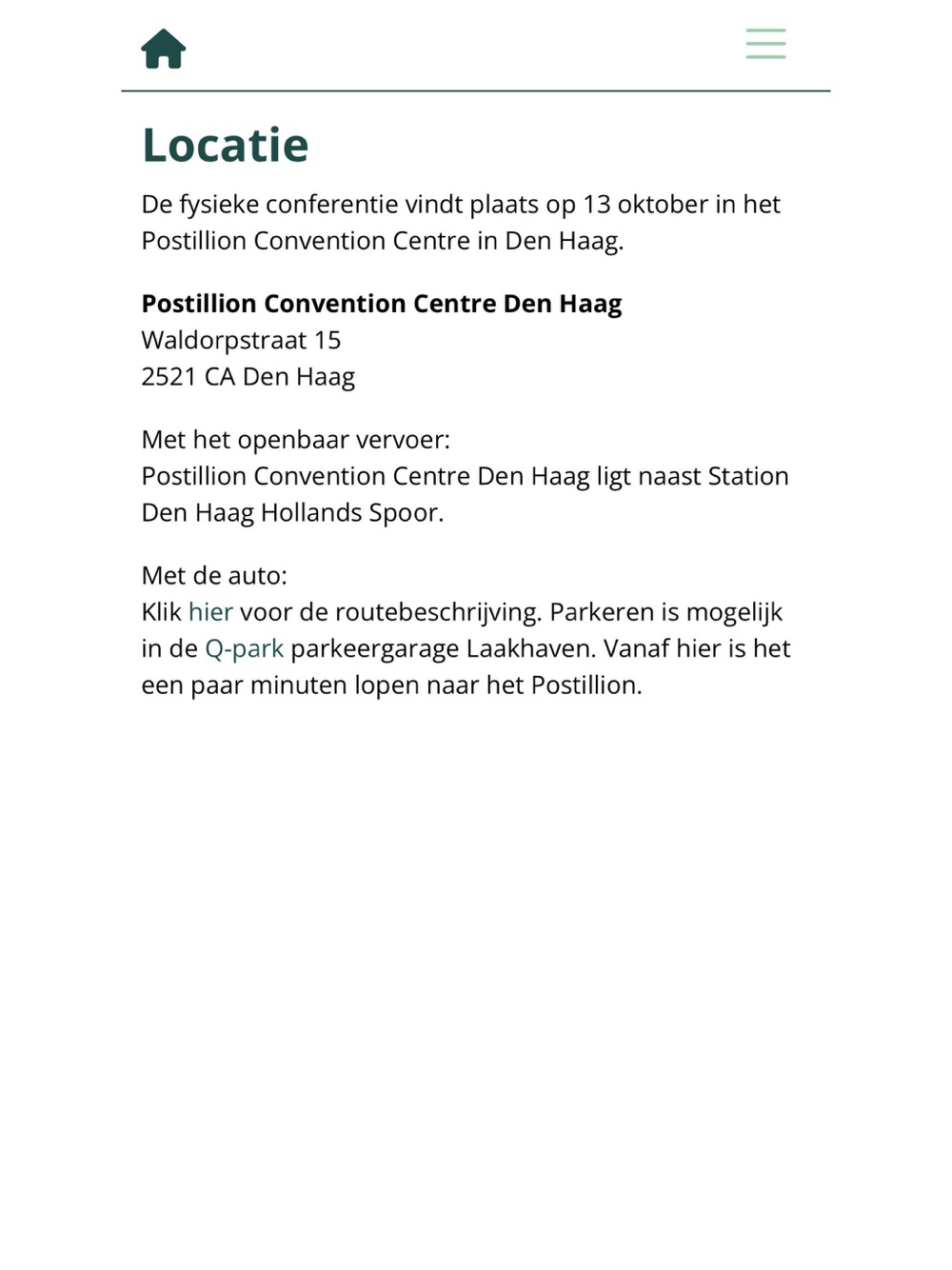 - Sprekerslijst, inclusief de mogelijkheid om direct via de app met hen te chatten en een afspraak te maken.