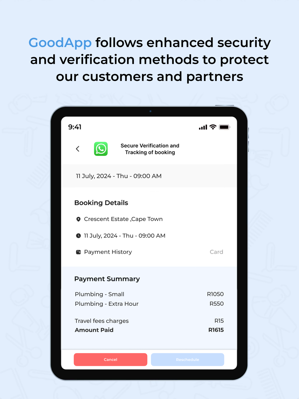 GoodApp is your go-to solution for home services, connecting you with verified professionals for plumbing, electrical work, cleaning, handyman tasks, and personal grooming. With fixed pricing, convenient booking, secure payments, and trusted experts, GoodApp makes it easy to get quality services on demand. Download today for professional help at your fingertips!