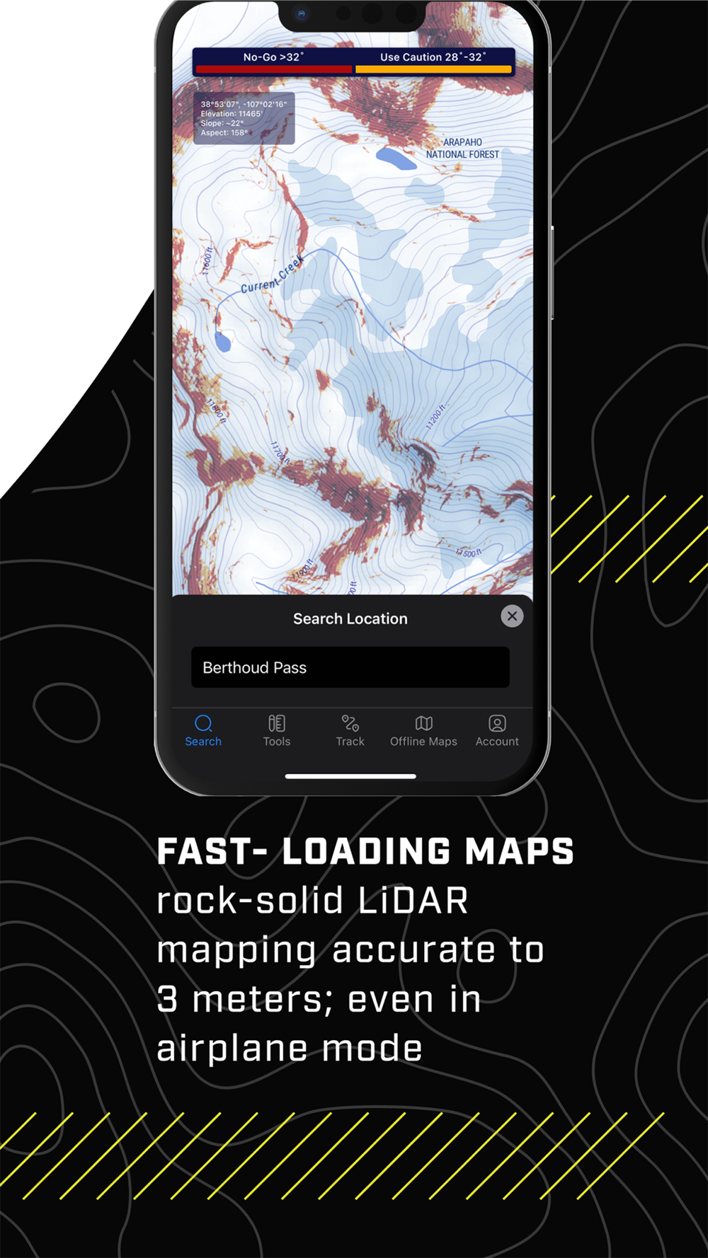 Our rock-solid, fast-loading LiDAR maps are stored locally on your phone, meaning you’re not straining for a signal when decisions matter most. Accurate to 3-meter resolution, you’ll see the terrain and risk factor around your precise location. Giving you control of the slopes you ski, and putting peace of mind in your pocket.