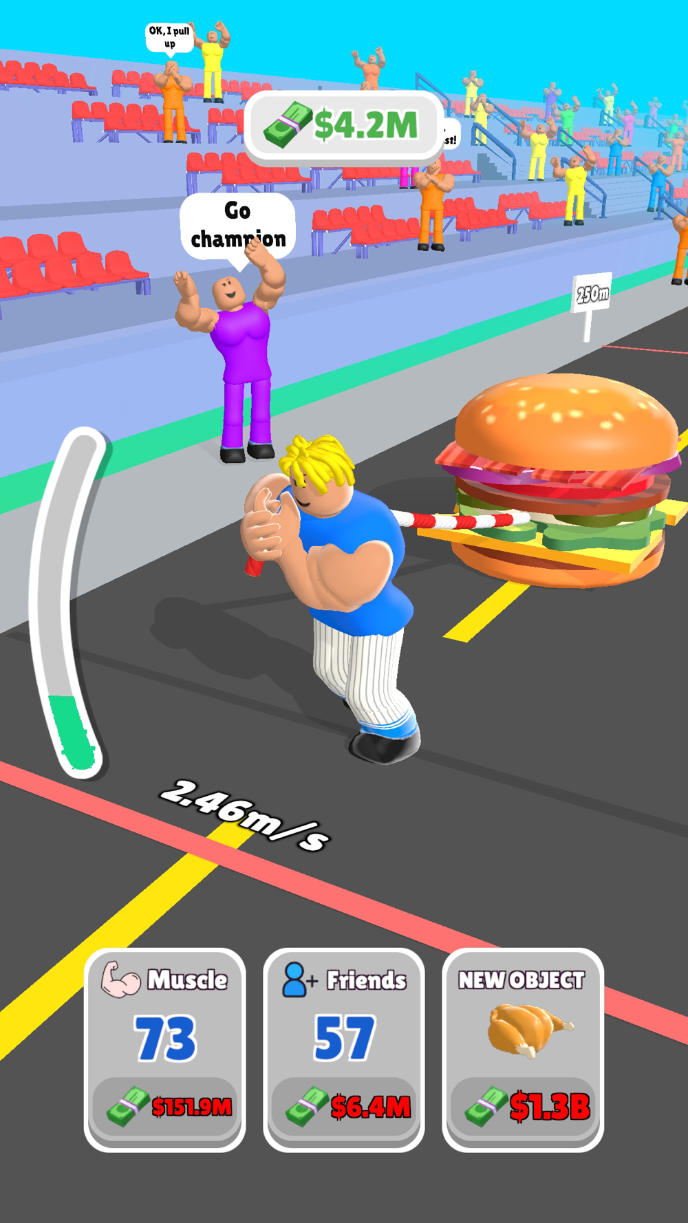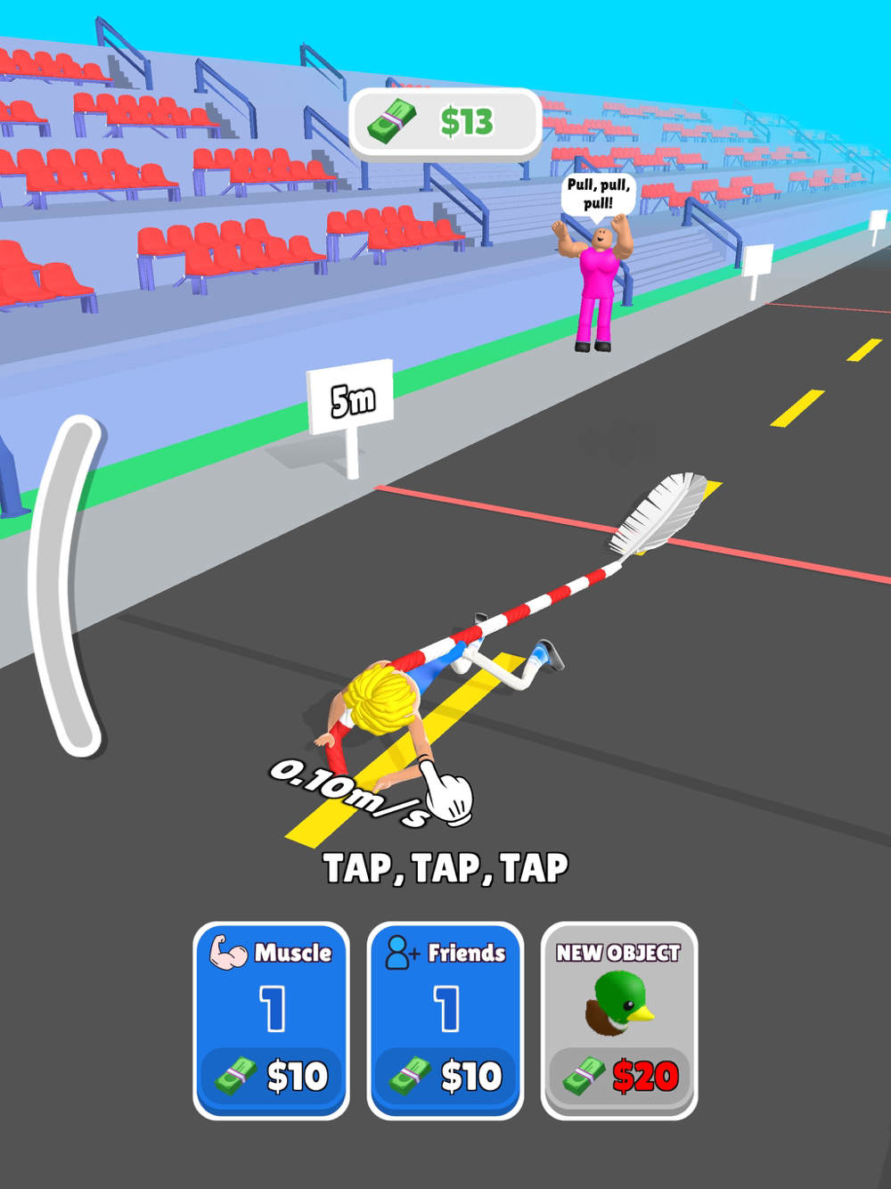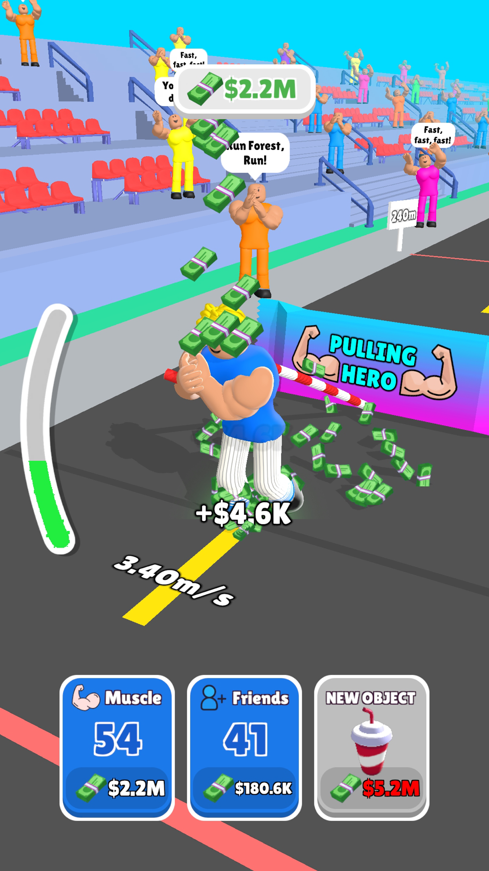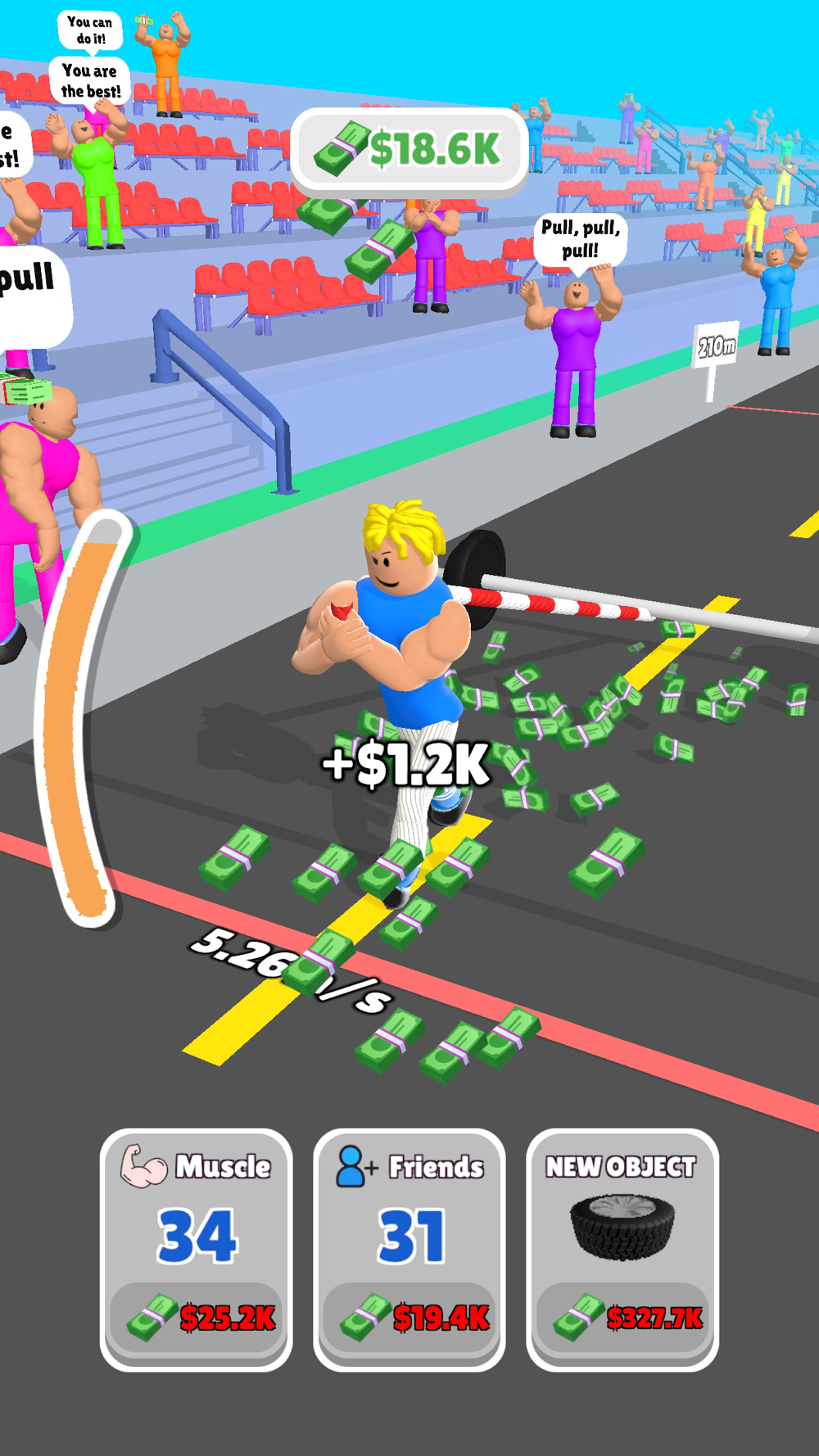 Start weak, upgrade your muscles, friends and be the pulling hero!