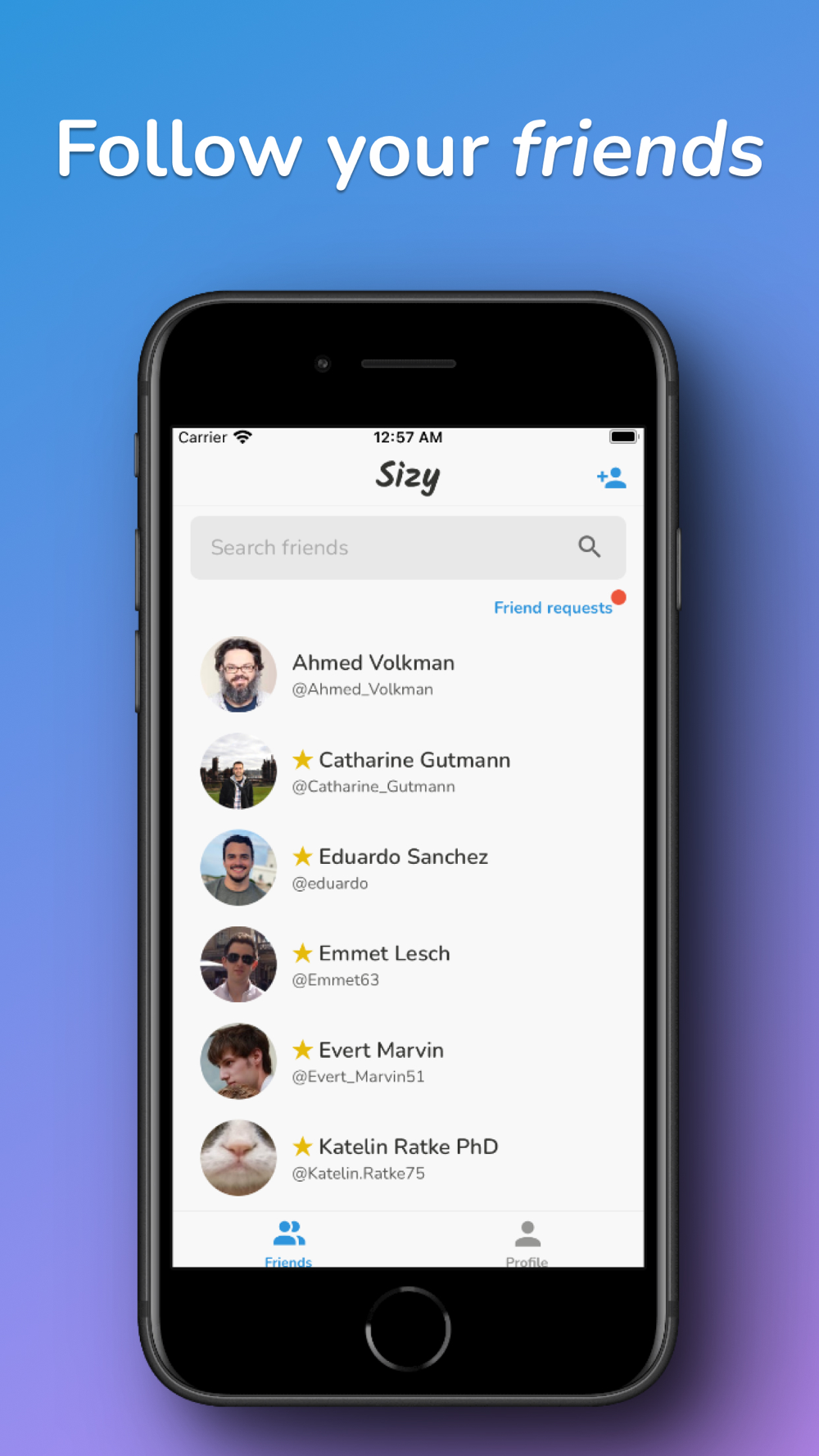 This app offers a seamless solution for saving and sharing clothing sizes, body measurements, and favorite brands with friends. Say goodbye to awkward size-asking conversations with loved ones and hello to easy gift-giving. The user-friendly interface allows for effortless entry and management of personal sizing information, and the ability to follow friends for convenient access to their sizing details. With this app, giving the perfect gift has never been easier!