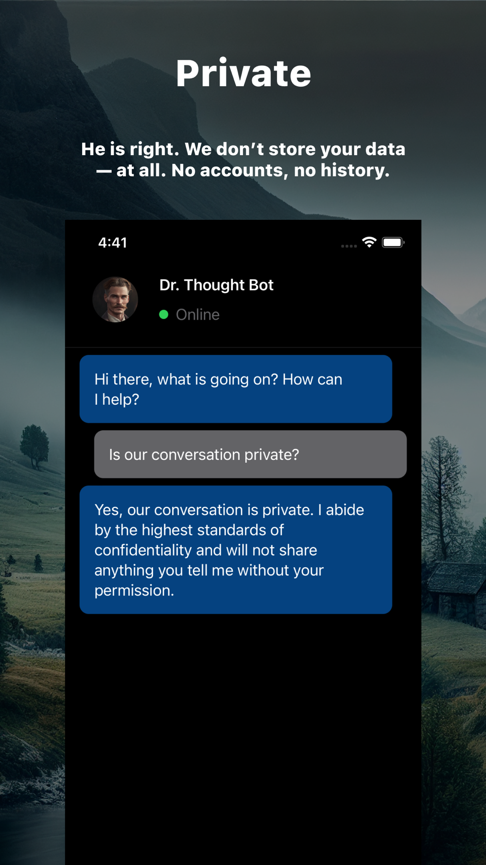 Our cutting-edge technology brings you one step closer to a peaceful state of mind! Dr. Thought Bot is free to try, and then requires a small monthly for unlimited access!