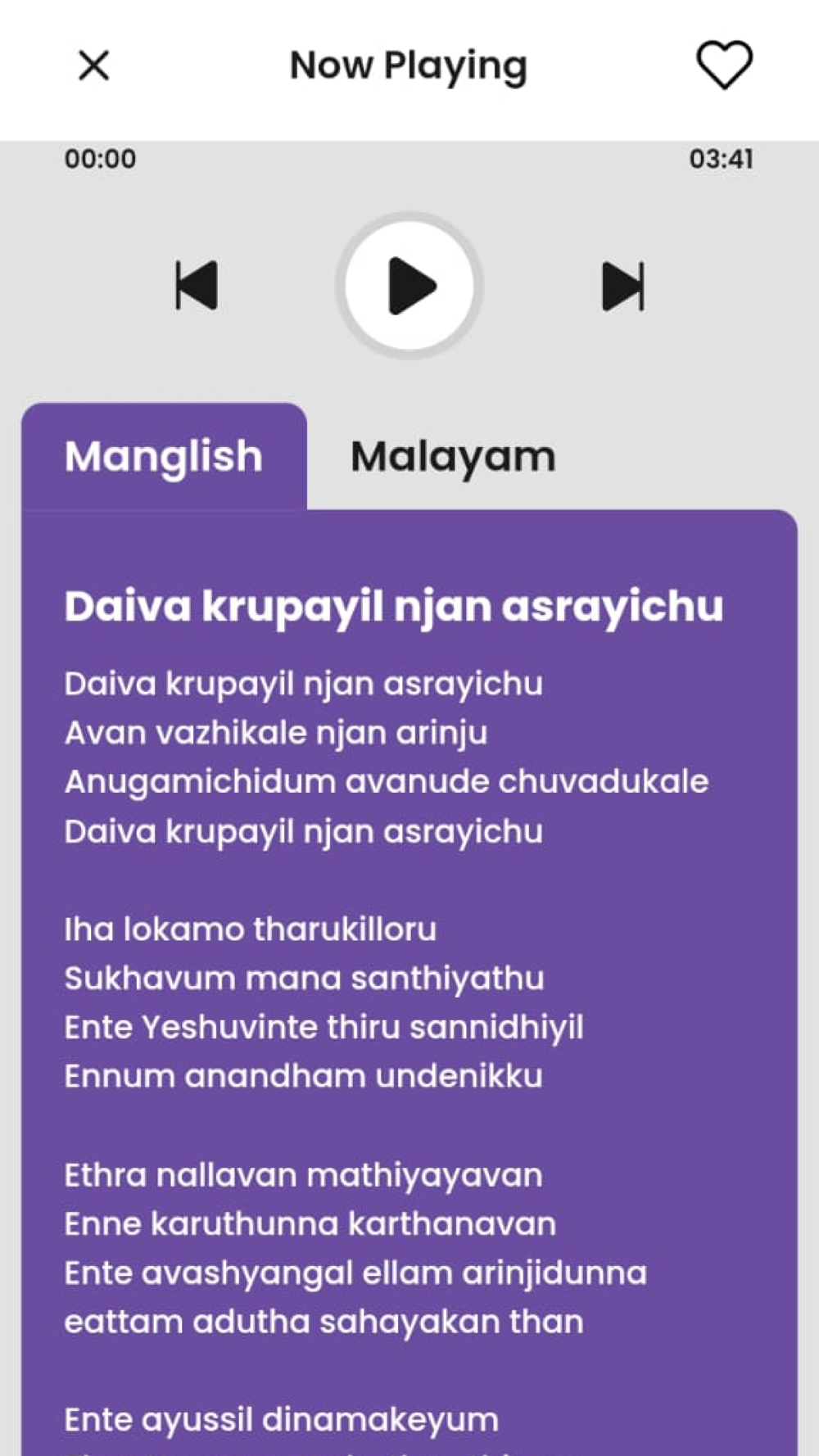 HIS WILL - Malayalam Christian App. Malayalam Audio Bible Narration, Malayalam Christian Songs and Lyrics and Christian Devotional Meditation App.
