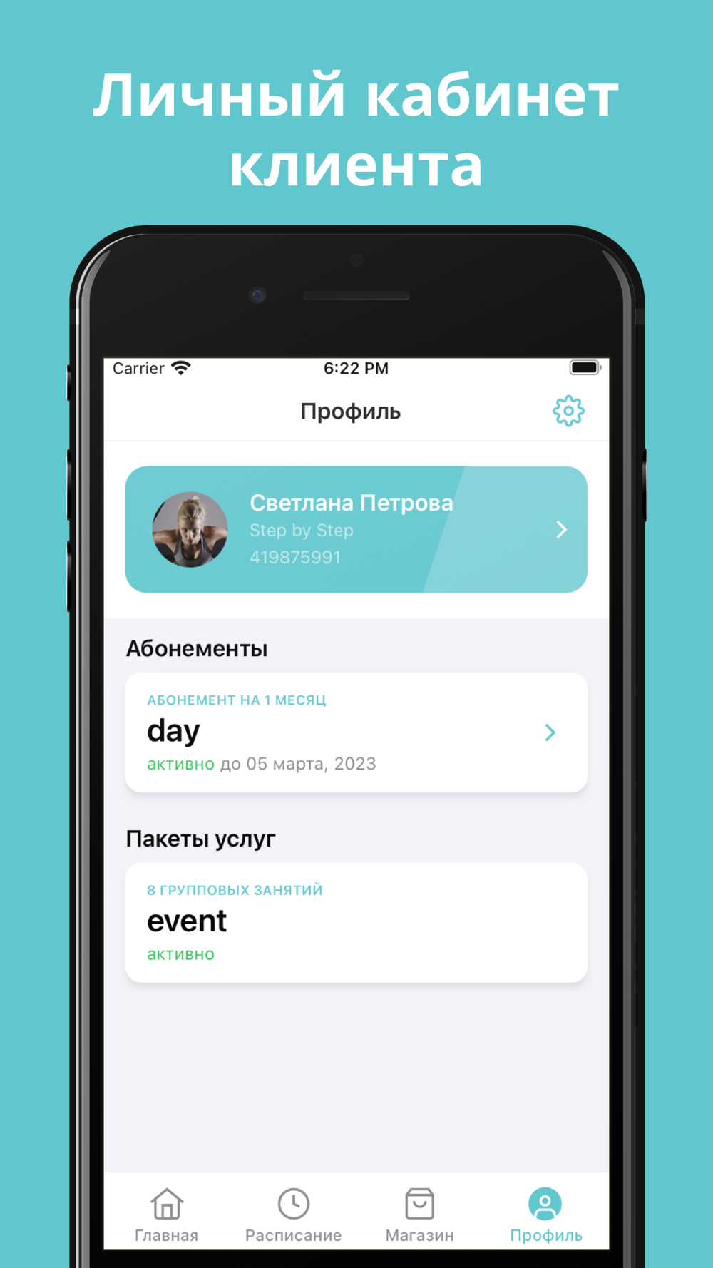 Приложение для клиентов фитнес-студии " Step by Step".
