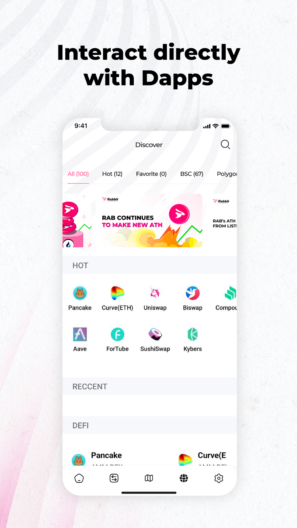 - Your Rabbit Wallet is encrypted locally on your device and biometrically secured