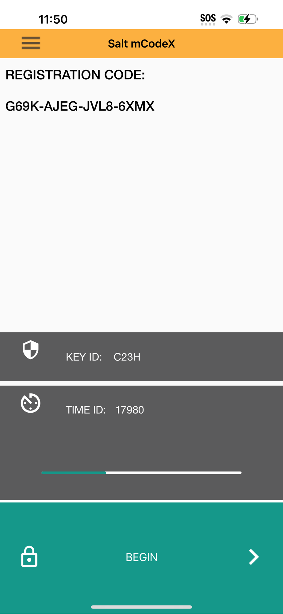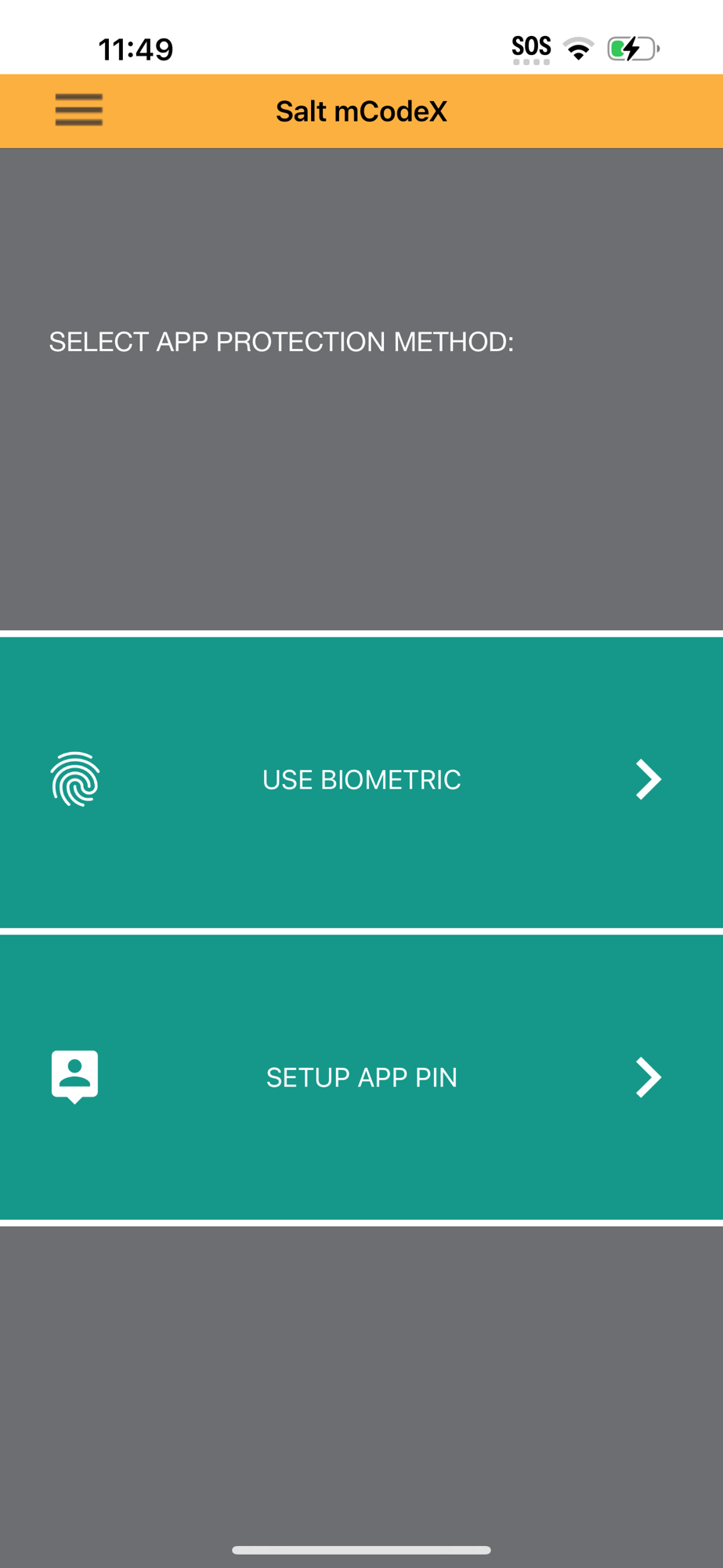 Salt mCodeX uses biometrics (face and fingerprint) authentication to generate One Time Passwords (OTP) and Challenge/Response signature codes that are displayed on the iOS device.