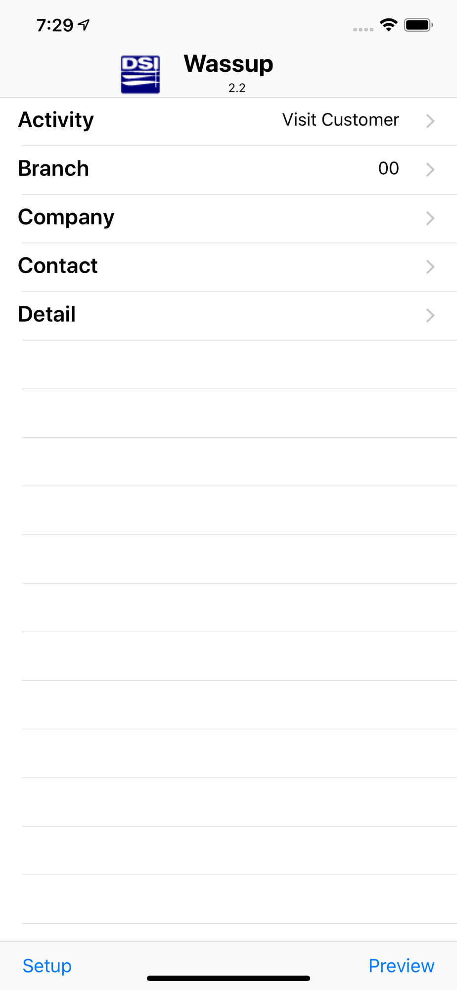 DSI Wassup helps the traveling salesman document their activities throughout the day. After each activity, such as visiting or calling a customer or prospect, the salesman enters the activity in DSI Wassup. The entry can document the activity type, the branch or sales territory, the company and contact that the activity pertains to, and a detail of the activity. DSI Wassup then emails this formatted activity to a user defined email address.