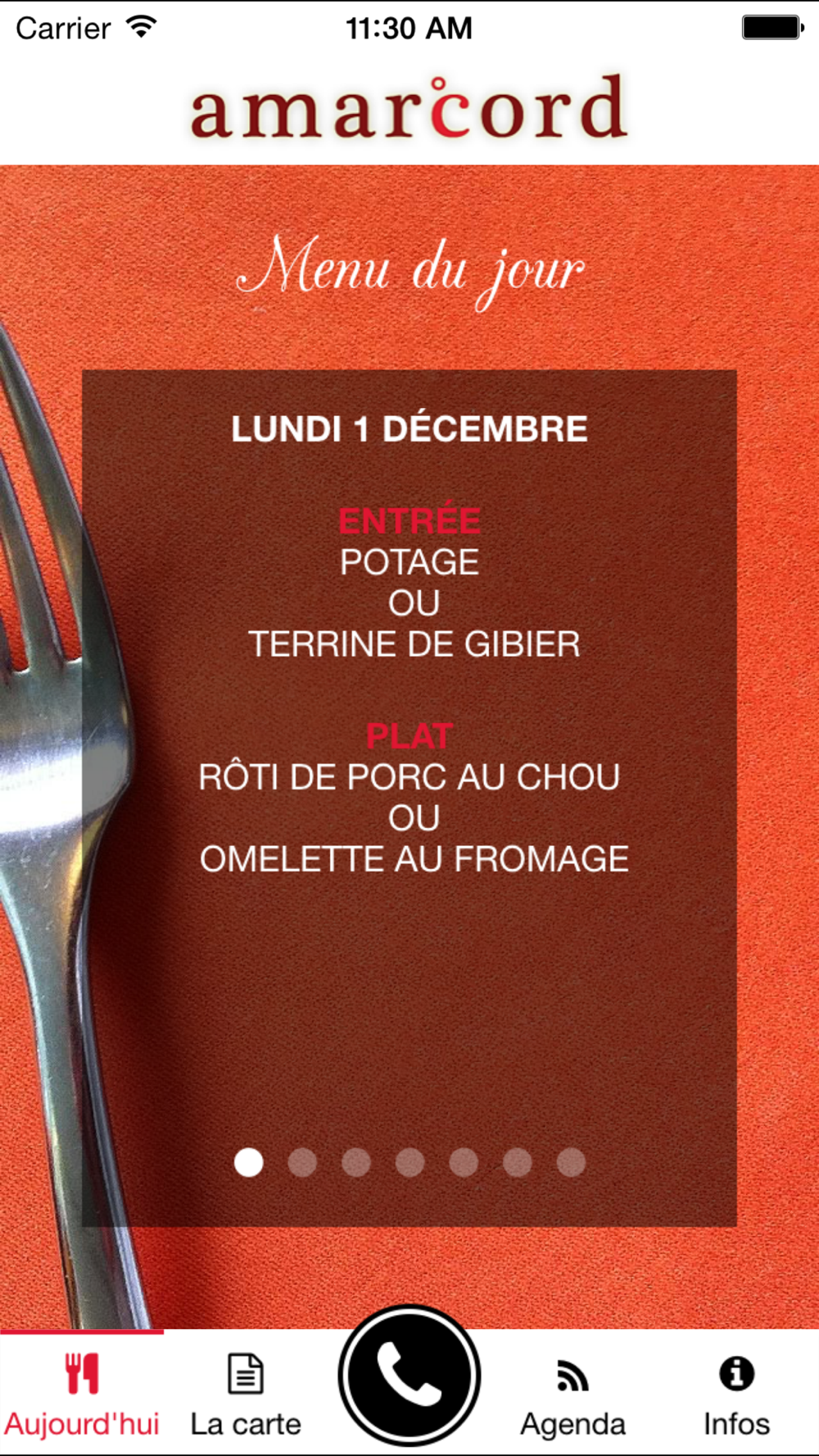- le Menu du jour,