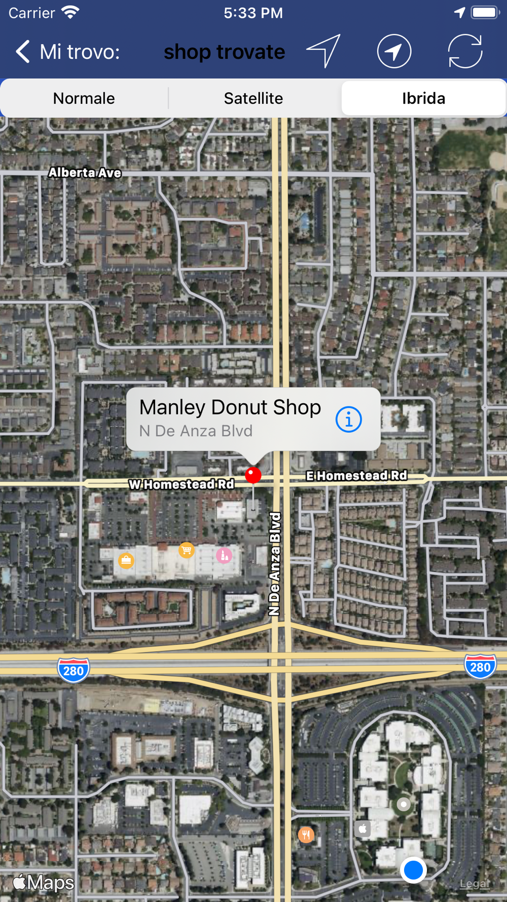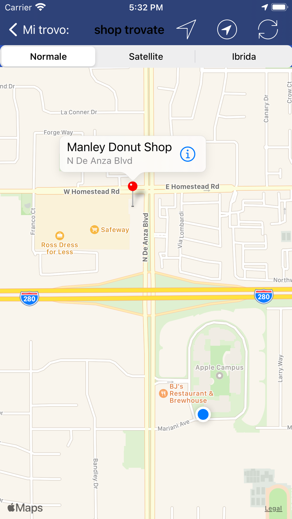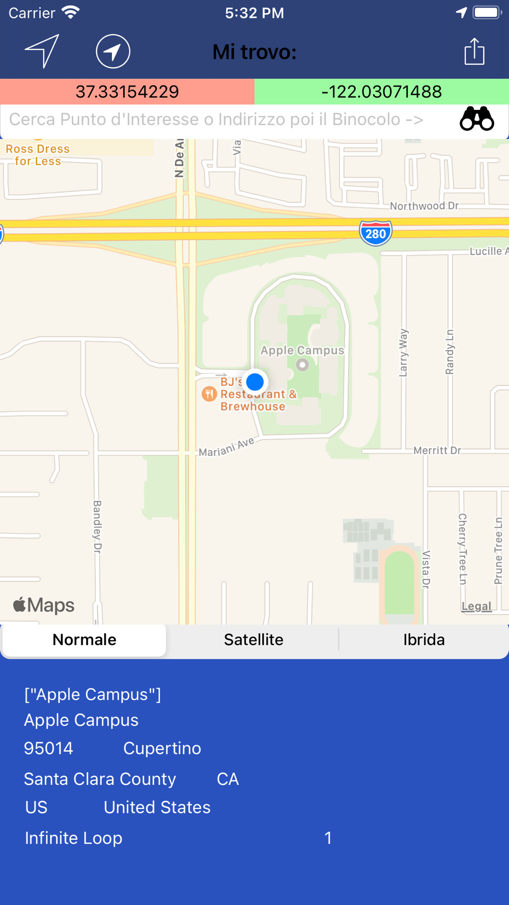 The Map is equipped with the identification of the current position, as well as the possibility to select the classic, space, hybrid type!