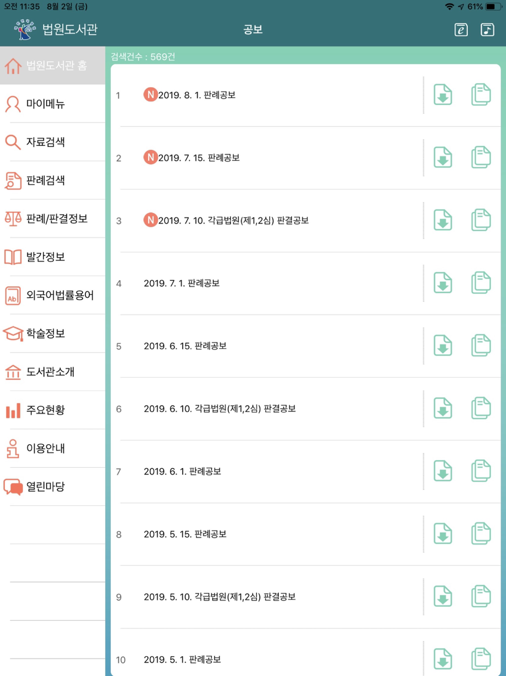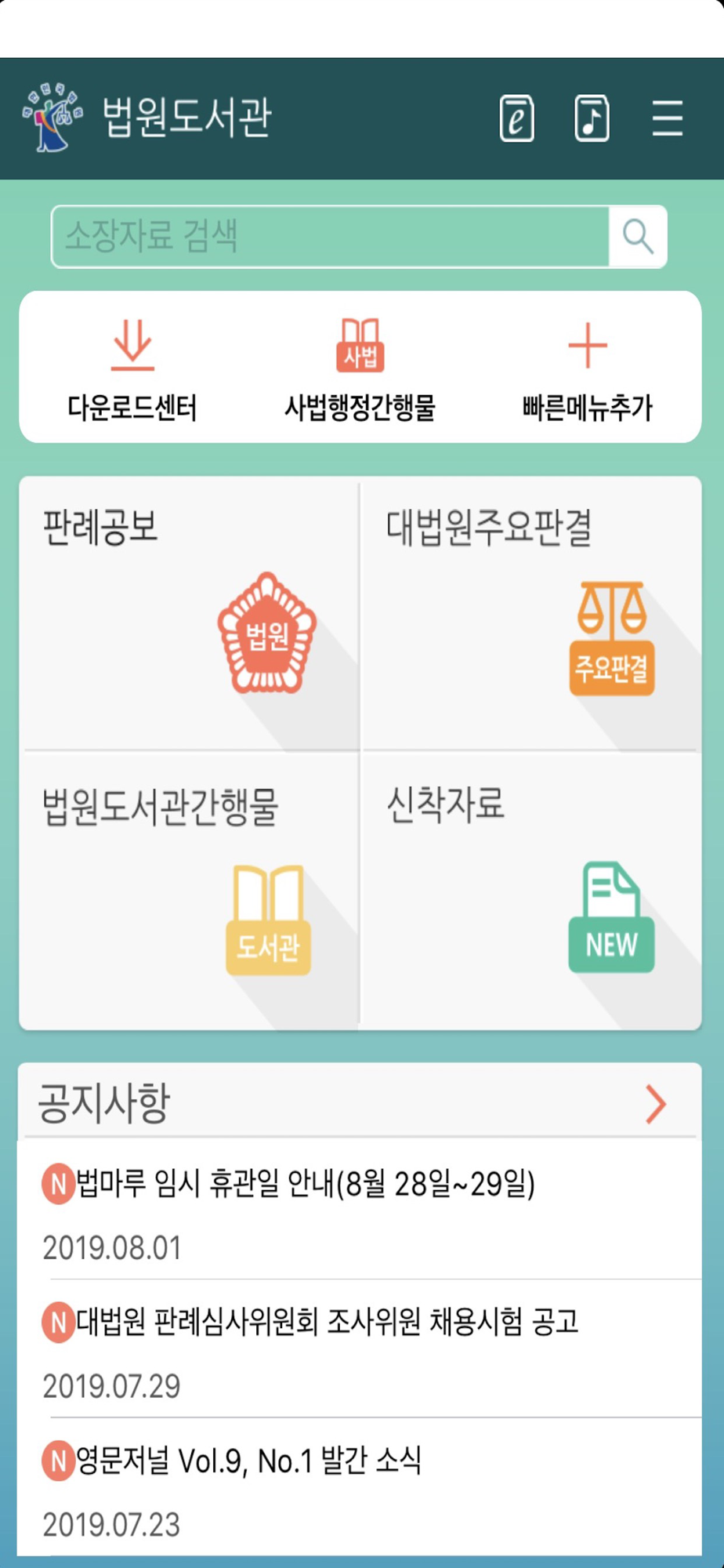 법원도서관에서 스마트폰 서비스를 시작합니다.