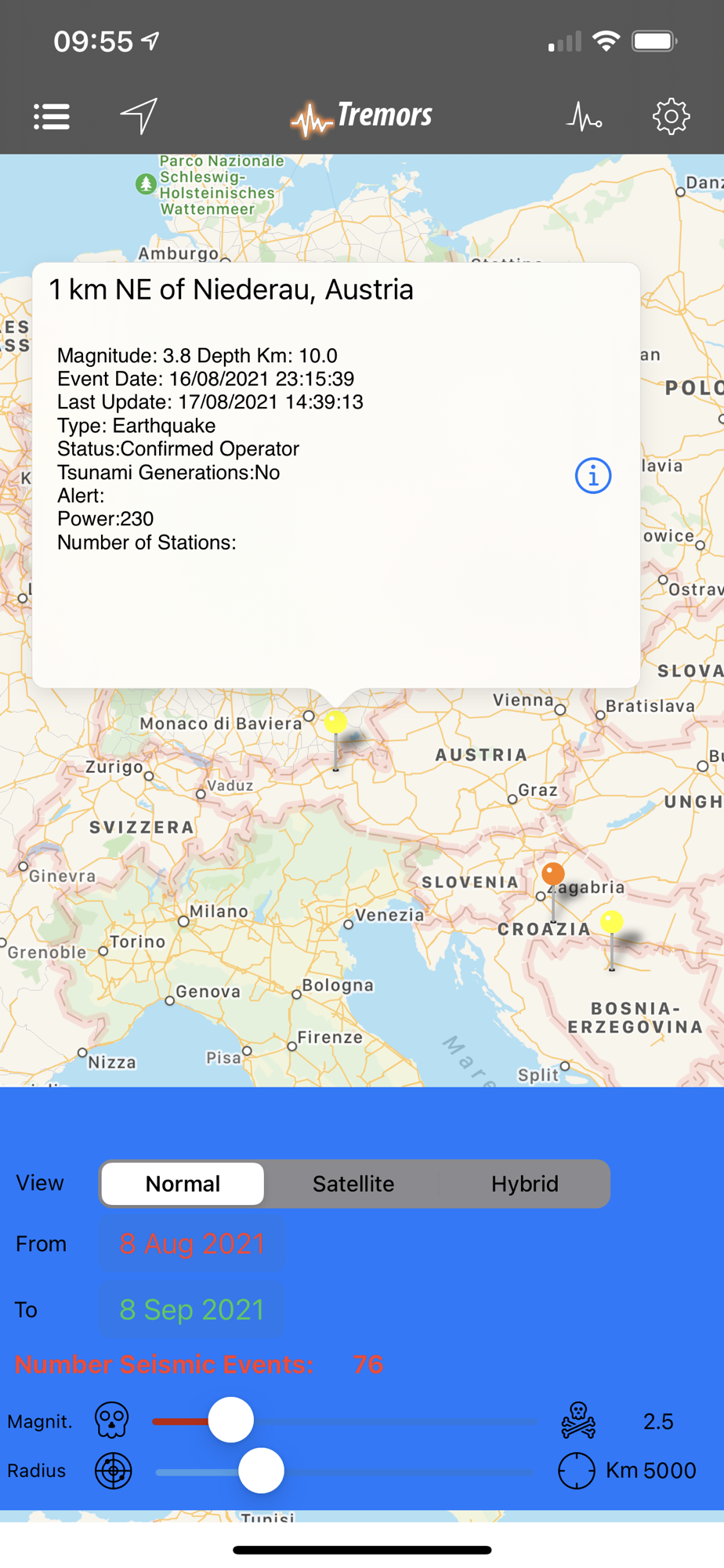 - Global "Earthquake List" in order of Event Date, to always know the latest earthquake