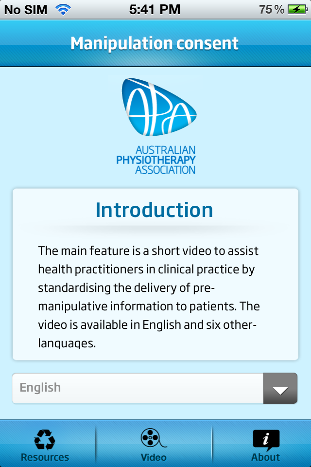 Manipulation Consent is a must-have app for physiotherapists or other health practitioners performing cervical manipulation in clinical practice. The app offers a range of useful resources including three videos and four Australian Physiotherapy Association (APA) publications.