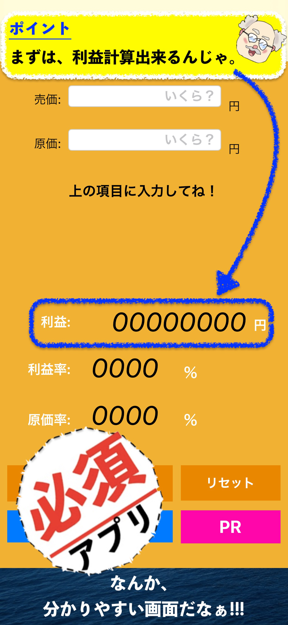 でしたら「売価」と 「原価」をアプリの数字記入欄に