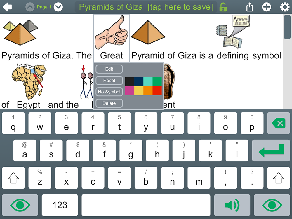 SymbolSupport is an iPad utility app that effortlessly adds symbols to text. As textis typed, symbols are automatically added above it. Text can also be copied from pre-existing written materials and pasted into SymbolSupport where symbols are instantly added. Documents are read with a high-quality text-to-speech voice and include word-by-word highlighting. This support helps students better understand class assignments.Symbols from Slater Literacy Support Pictures™ and Attainment’s Image Library are included. Plus, there is easy access to your camera roll and a built-in internet image search.Easy-to-use editing tools include changing auto-assigned symbols to other symbols or imported images and removing symbols from text to reduce the number of symbols on a page. SymbolSupport is designed to create symbolized text quickly and easily. Sharing these documents is equally important. Share documents via AirDrop, email, or send to any cloud storage setup on the iPad. Documents can be sent as a PDF for studentportfolios or shared with parents. Documents can also be sent as a SymbolSupport file which can be opened by SymbolSupport or SymbolSupport Lite apps.