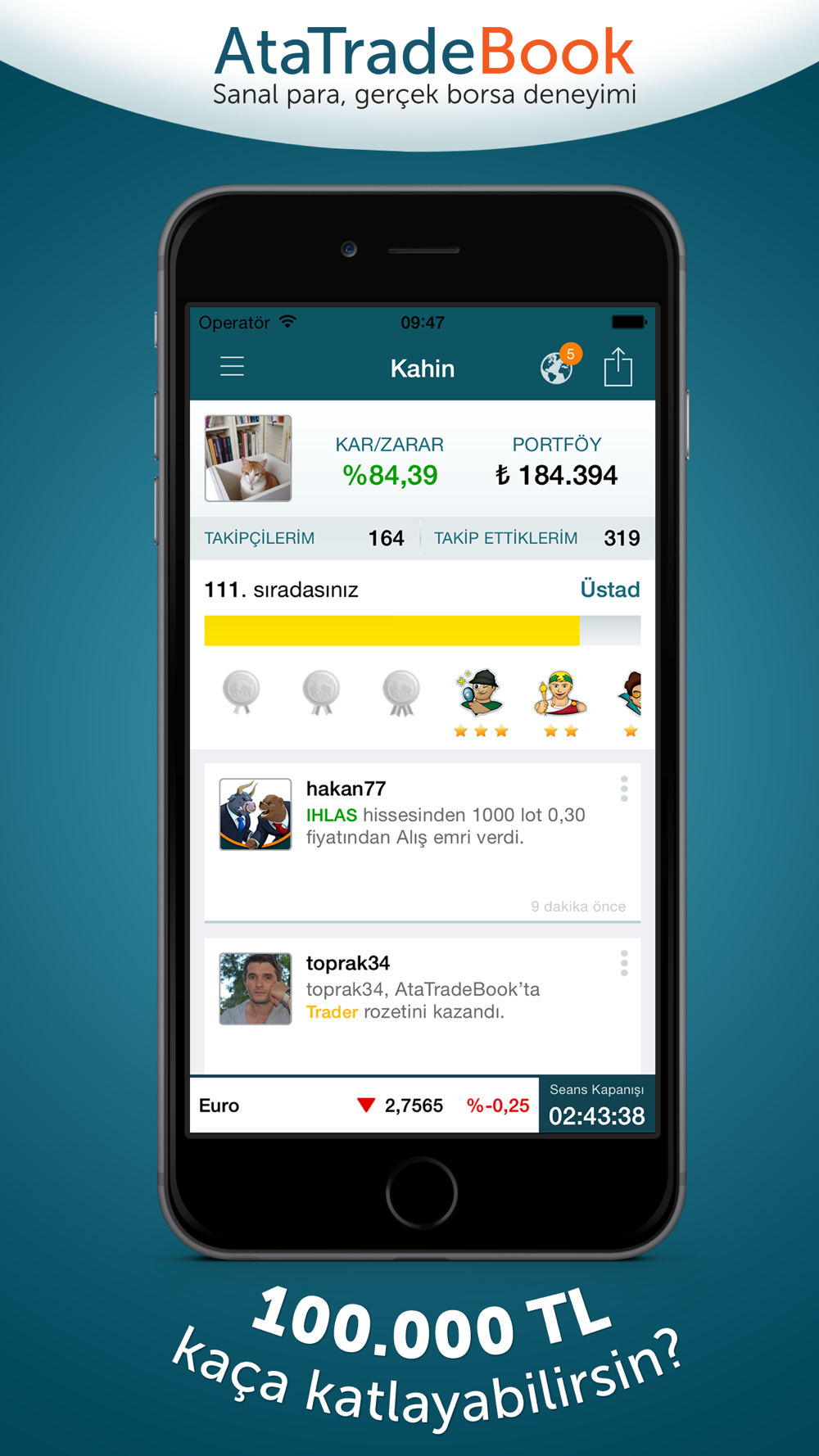 • Yaptığınız hareketlere ve etkileşim yüksekliğine göre rozet veya madalya kazanabilir, AtaTradeBook'un en iyisi (Para Babası) olabilirsiniz.