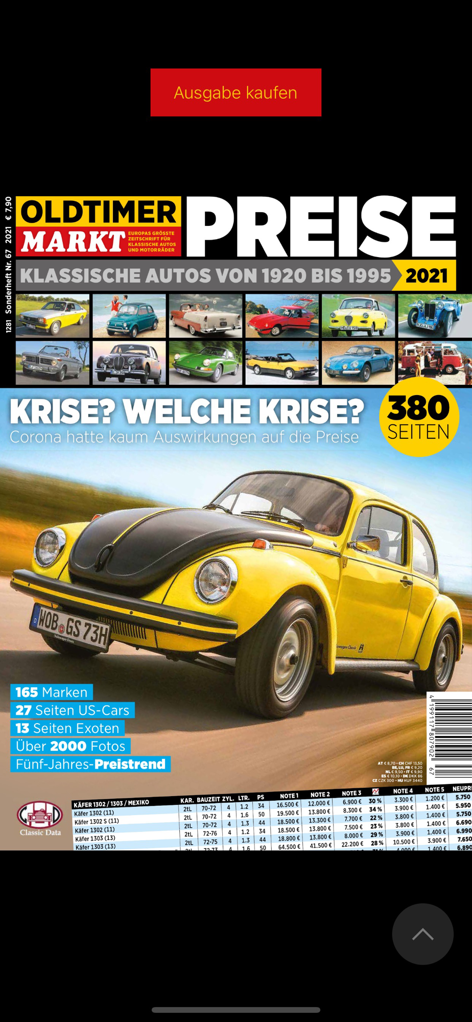 • Informationen zu unseren Allgemeinen Geschäftsbedingungen finden Sie unter: http://www.oldtimer-markt.de/agb/agb-der-vf-verlagsgesellschaft-mbh“