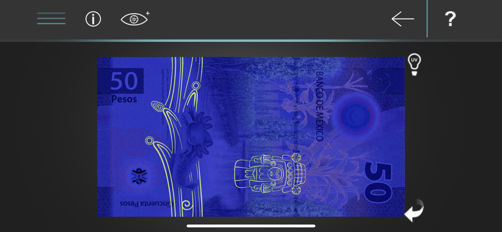 Aplicación que permite fortalecer la comunicación con la población mediante la difusión de los elementos de seguridad y elementos artísticos de los billetes mexicanos de una forma didáctica e interactiva.