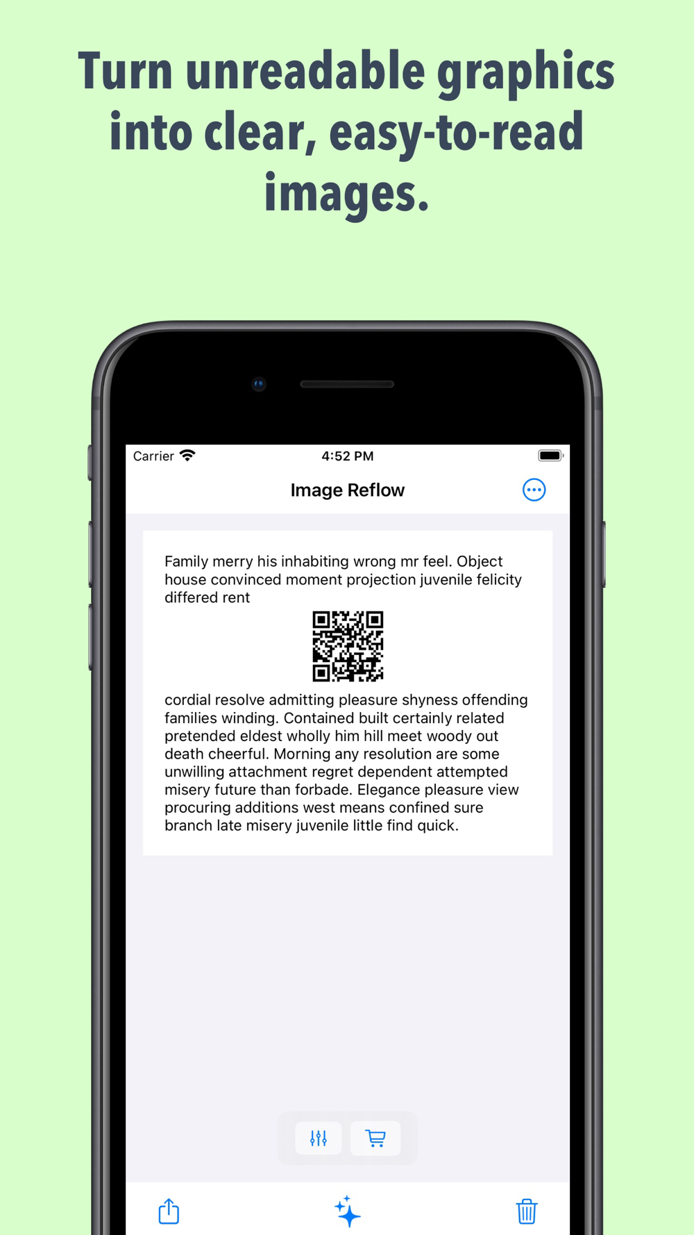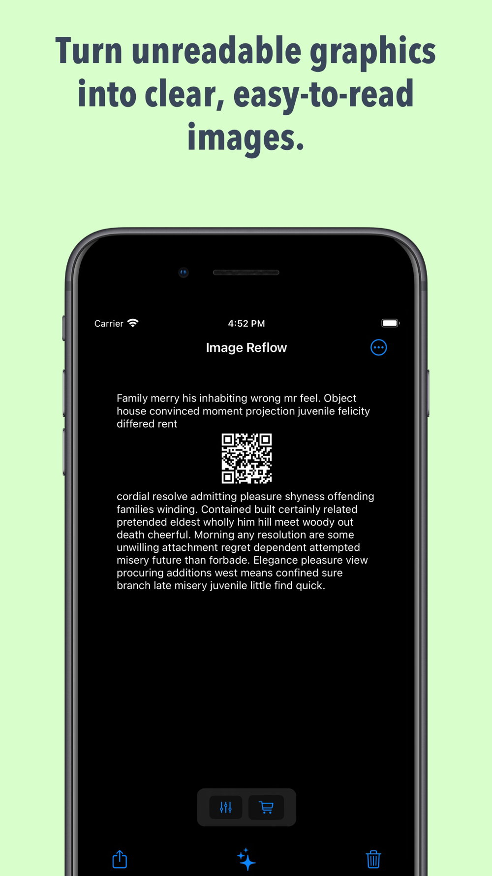 Read the unreadable screenshots. Convert images to text and back -- formatted for your device.