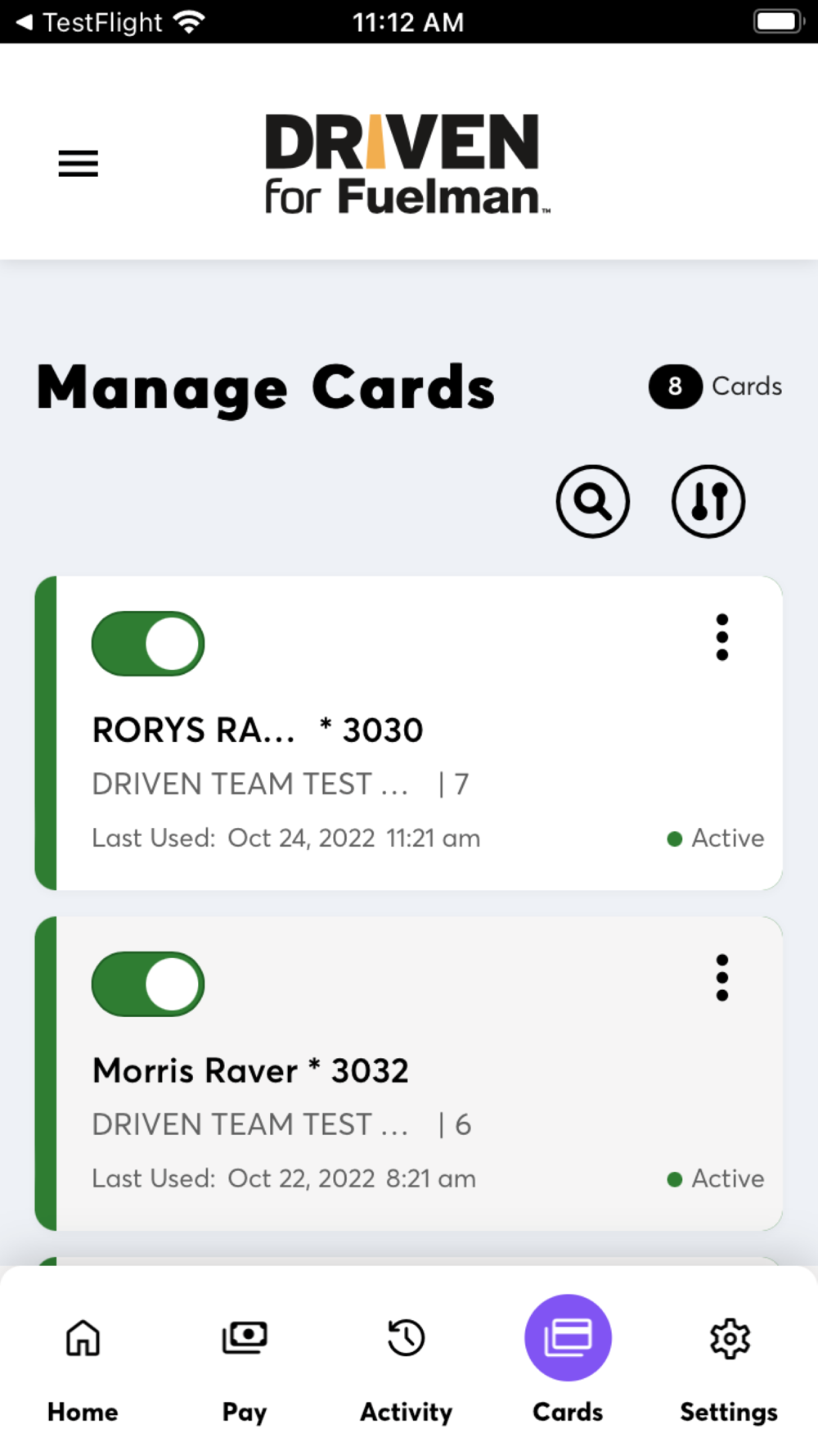 Designed for Fleet Managers on-the-go, the DRIVEN FOR FUELMAN™ mobile app helps Fleets manage their account, cards, drivers, vehicles, and more from the convenience of their mobile device. With DRIVEN you can: