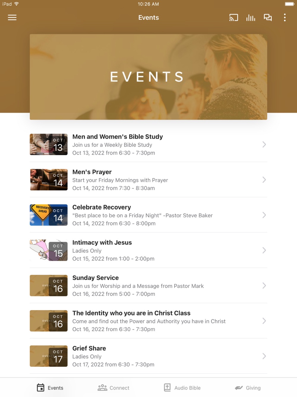 This app will help you stay connected with the day-to-day life of our church. With this app you can: watch or listen to past messages; stay up to date with calendar events; share your favorite messages via Twitter, Facebook, or email; and download messages for offline listening.