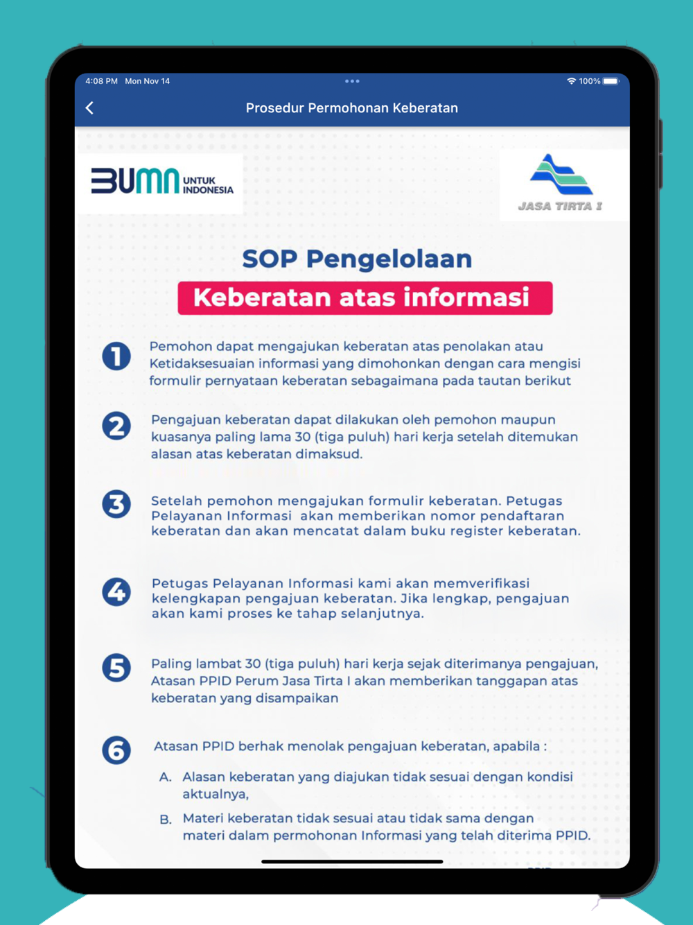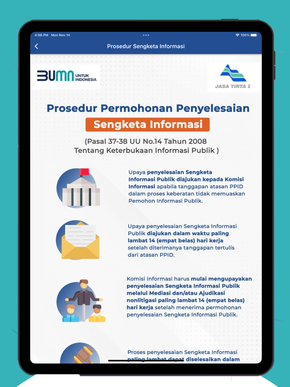 Aplikasi E-PPID Perum Jasa Tirta I dikembangkan oleh perusahaan sebagai sarana layanan permintaan data perusahaan
