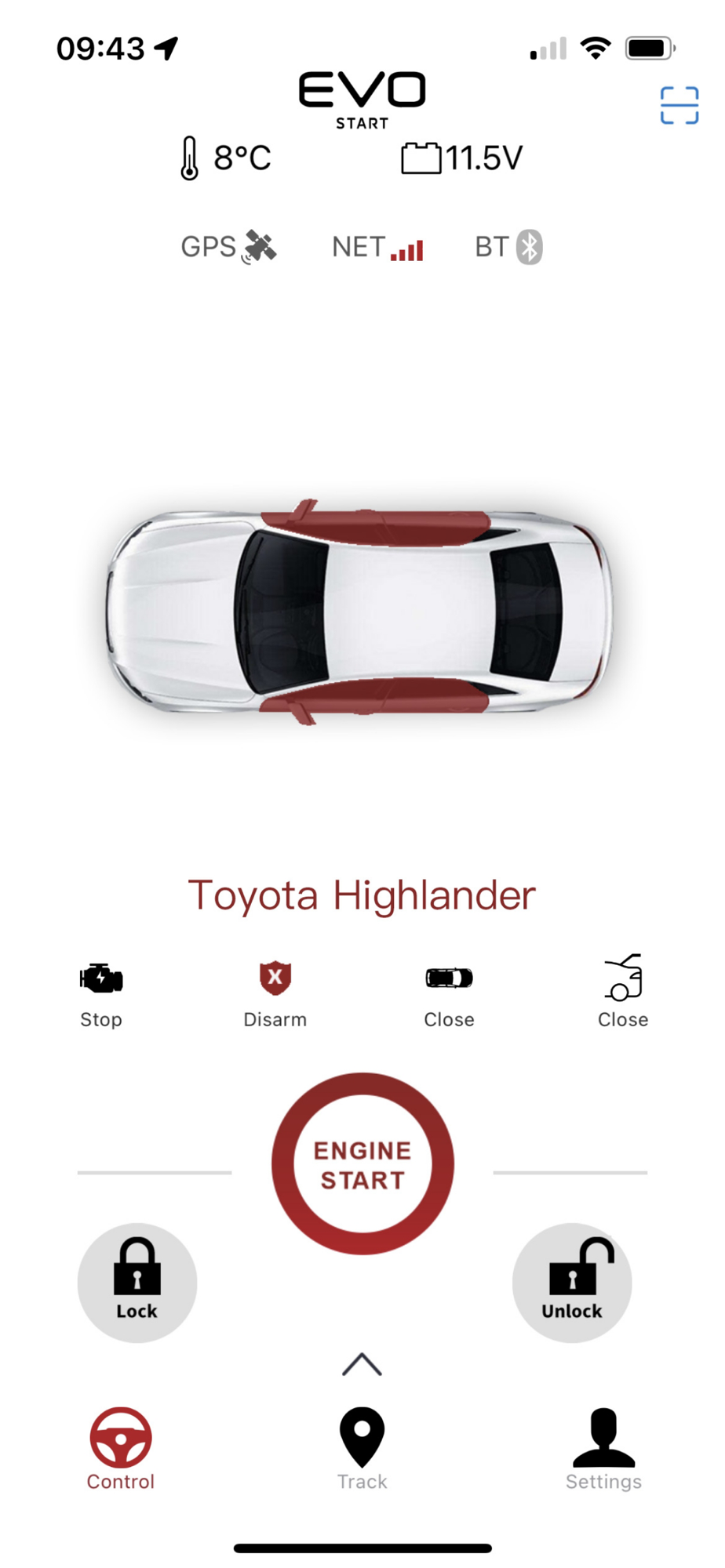 Connect the EVO-START device to a compatible remote control system. Once the EVO-START app is installed on your iOS device, you can use it to remote start/stop the engine, control and track your vehicles, as well as receive push notifications regarding your vehicles status.