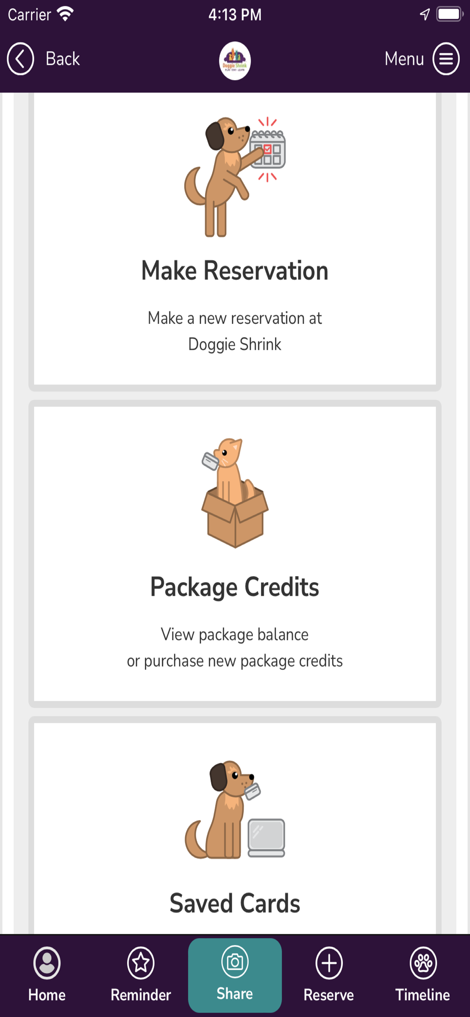 The Doggie Shrink App enables users to make reservations, purchase package credits, see and pay invoices, message with Doggie Shrink, see photos of their pets, and more. Employees of Doggie Shrink are able to manage the business and connect with customers. This app is made specifically for the customers and employees of Doggie Shrink.