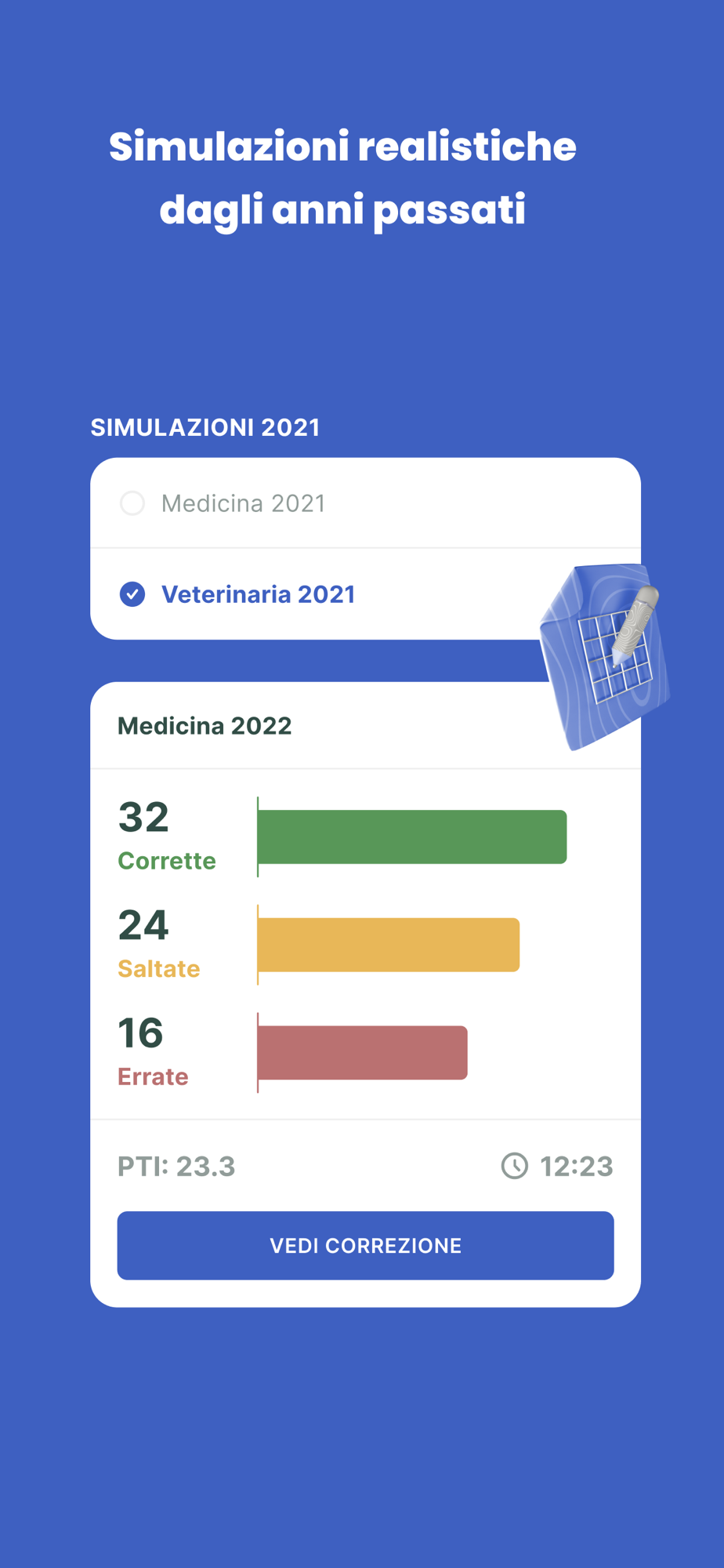 Il simulatore mobile sempre aggiornato per allenarti sui quiz dei test d'ingresso alle facoltà medico-sanitarie: con TestCorner puoi svolgere infinite combinazioni di quiz misti o monotematici e svolgere le simulazioni degli anni precedenti.