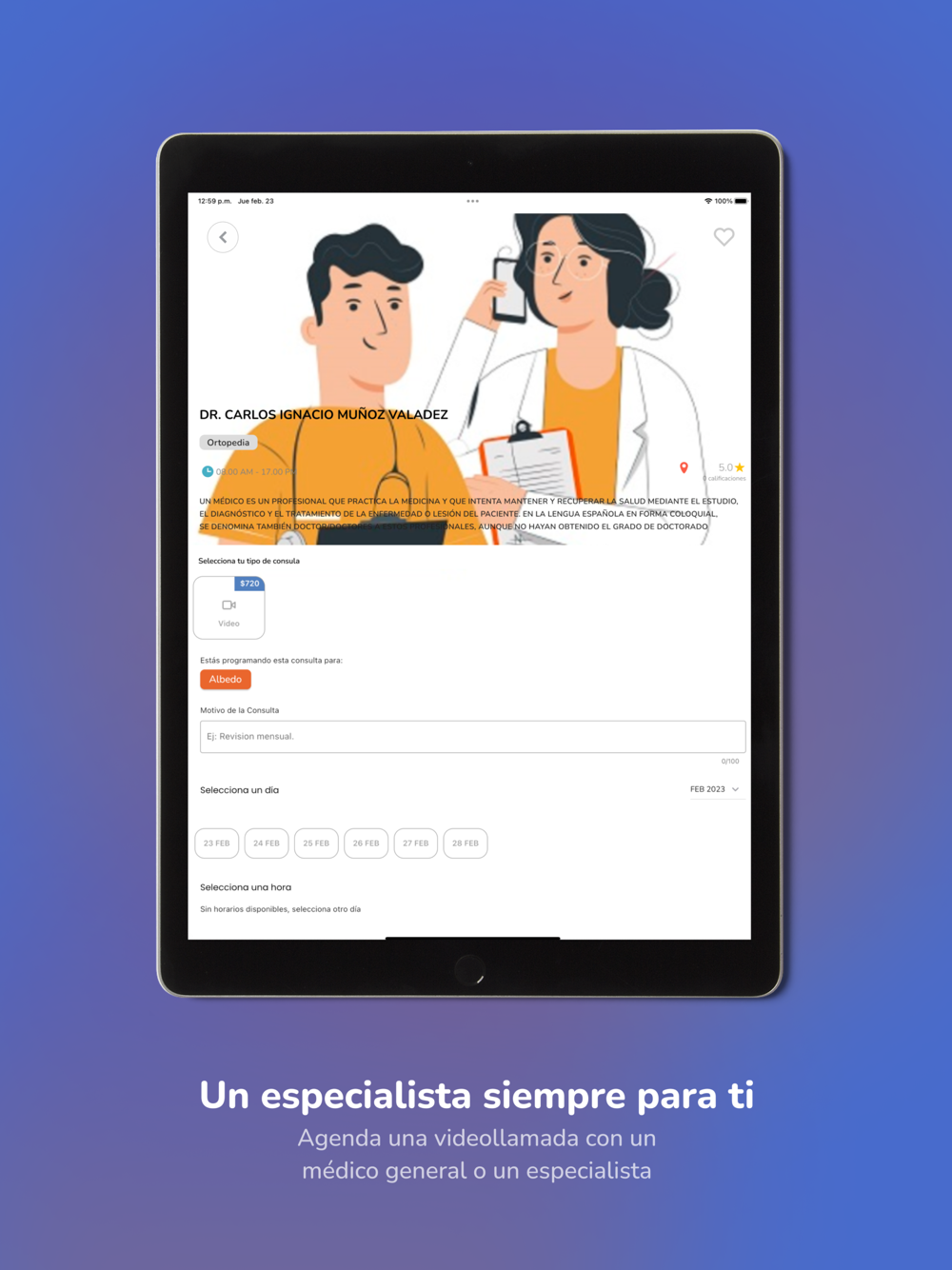 Agenda videoconsultas con cientos de médicos especialistas a precios preferenciales ¡Cuando quieras y desde donde estés! Tú decides con quien atenderte, conoce las calificaciones que otros pacientes le han otorgado y agenda tu cita en el horario y día más conveniente para ti,