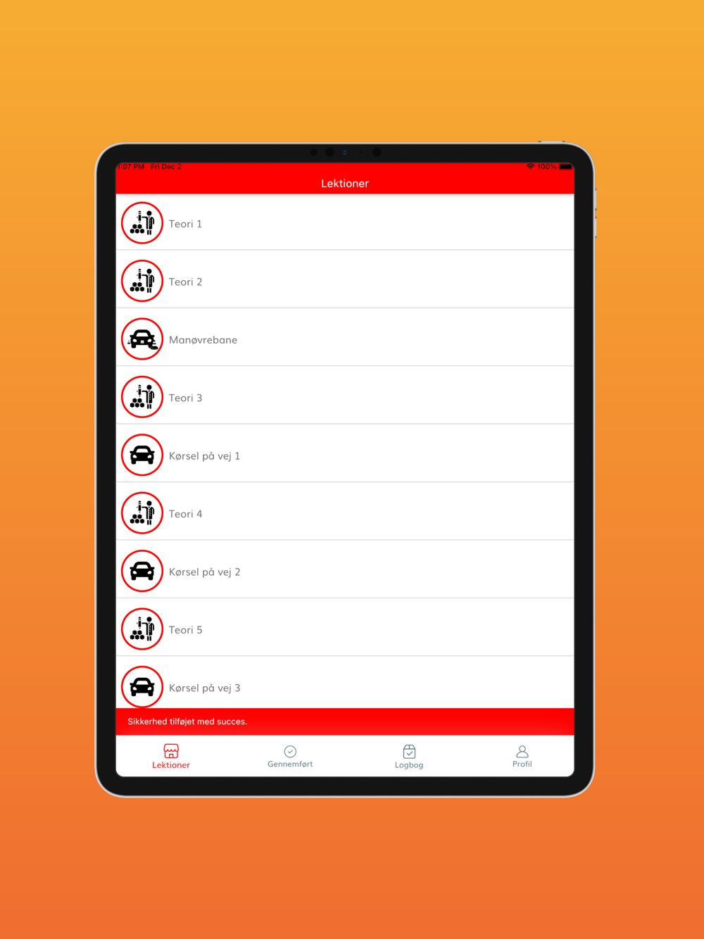 The driving school has drawn up this lesson plan for your lessons. The system has been introduced to ensure you receive the right training, for the benefit of road safety.