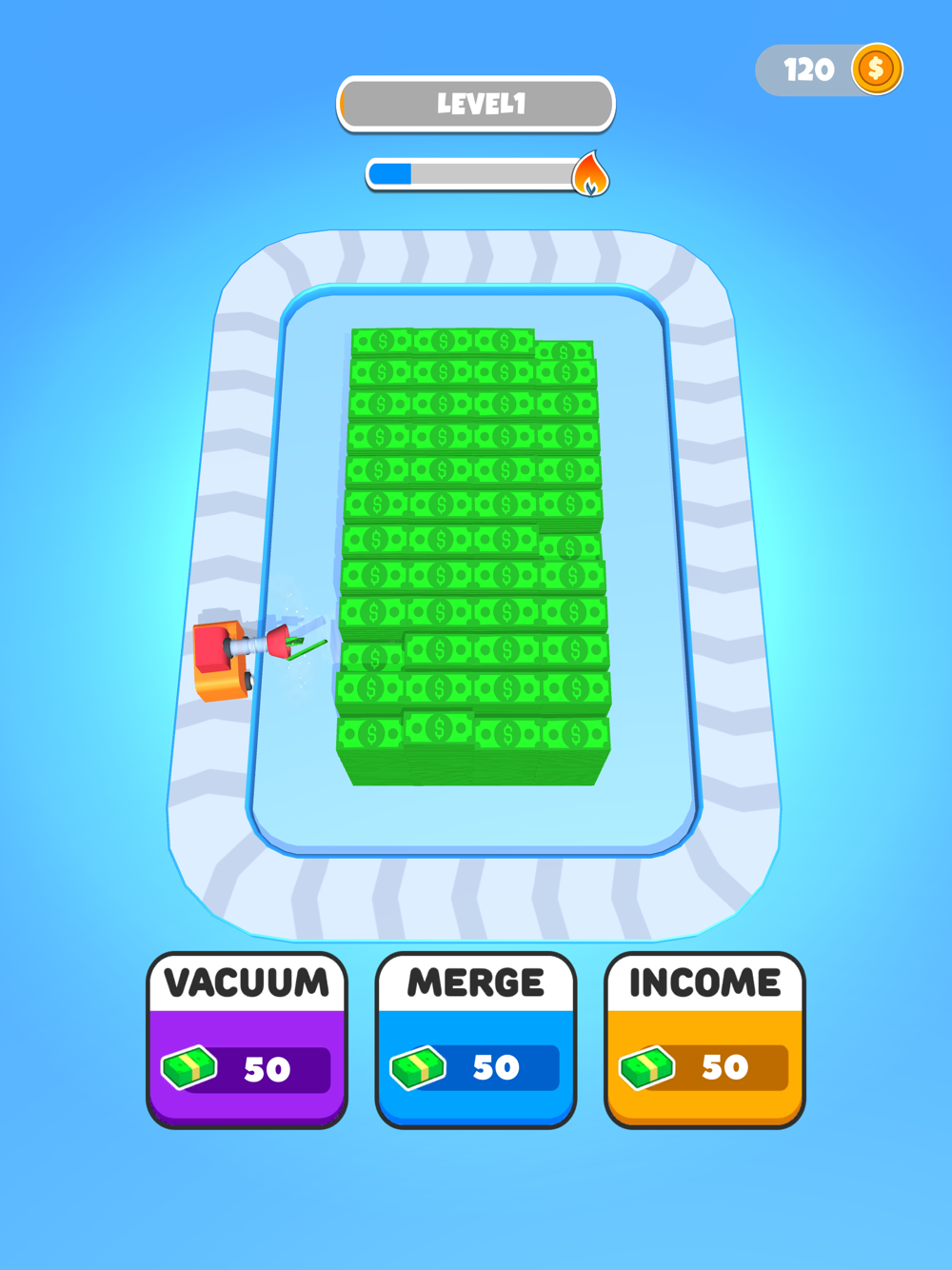 A clicker game where you try to grab all the cash in the middle by adding more and more vacuums!