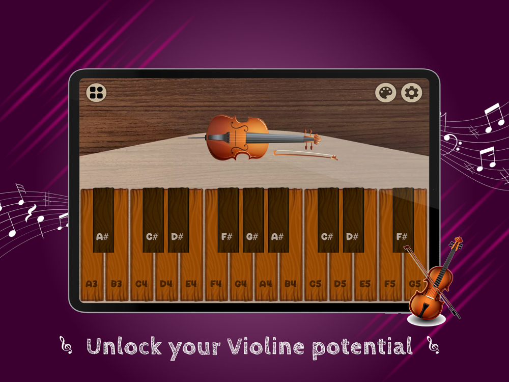 The app features a wide range of features including different types of violins, various sound effects, and the ability to customize the sound and appearance of the virtual instrument.