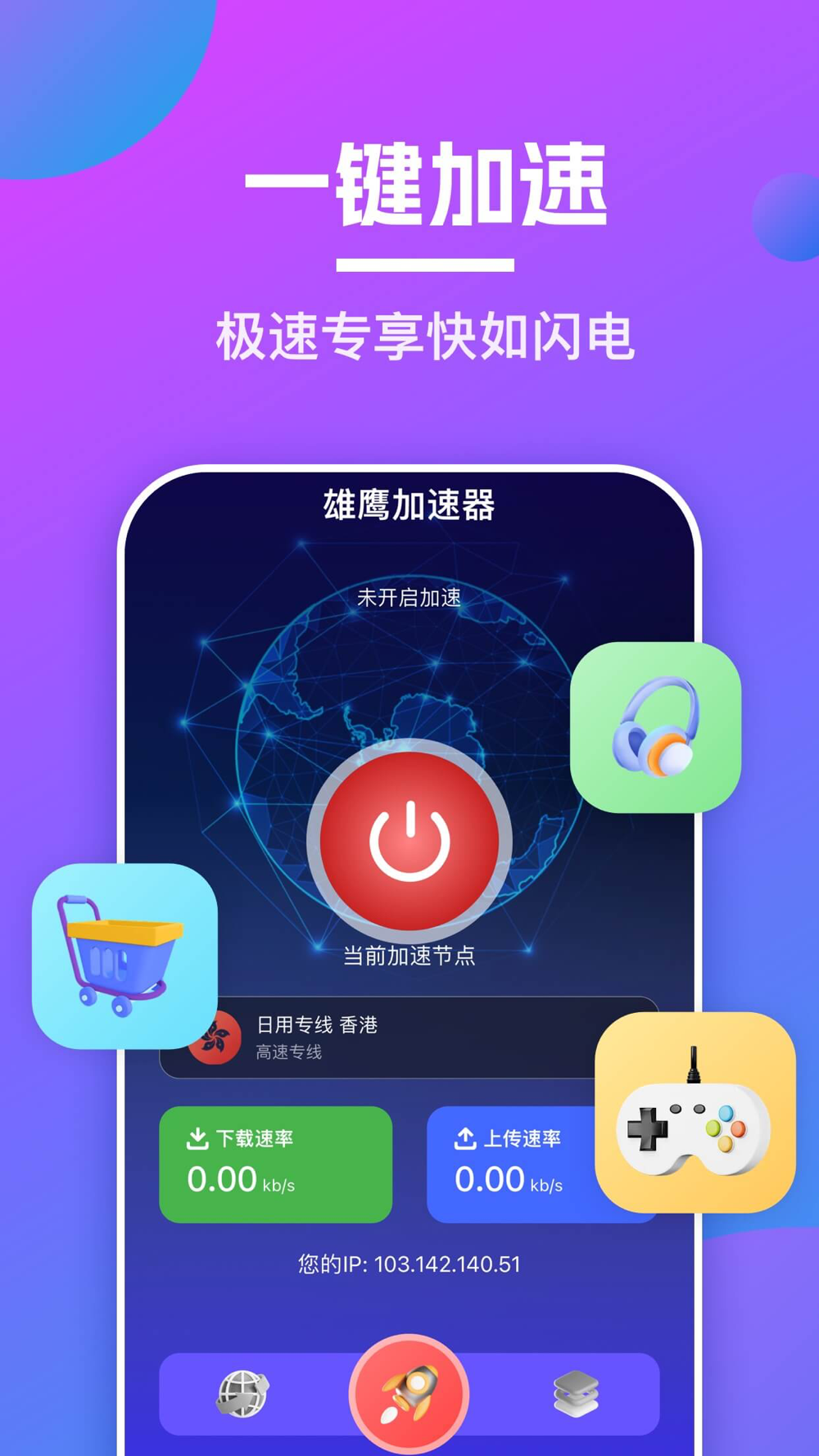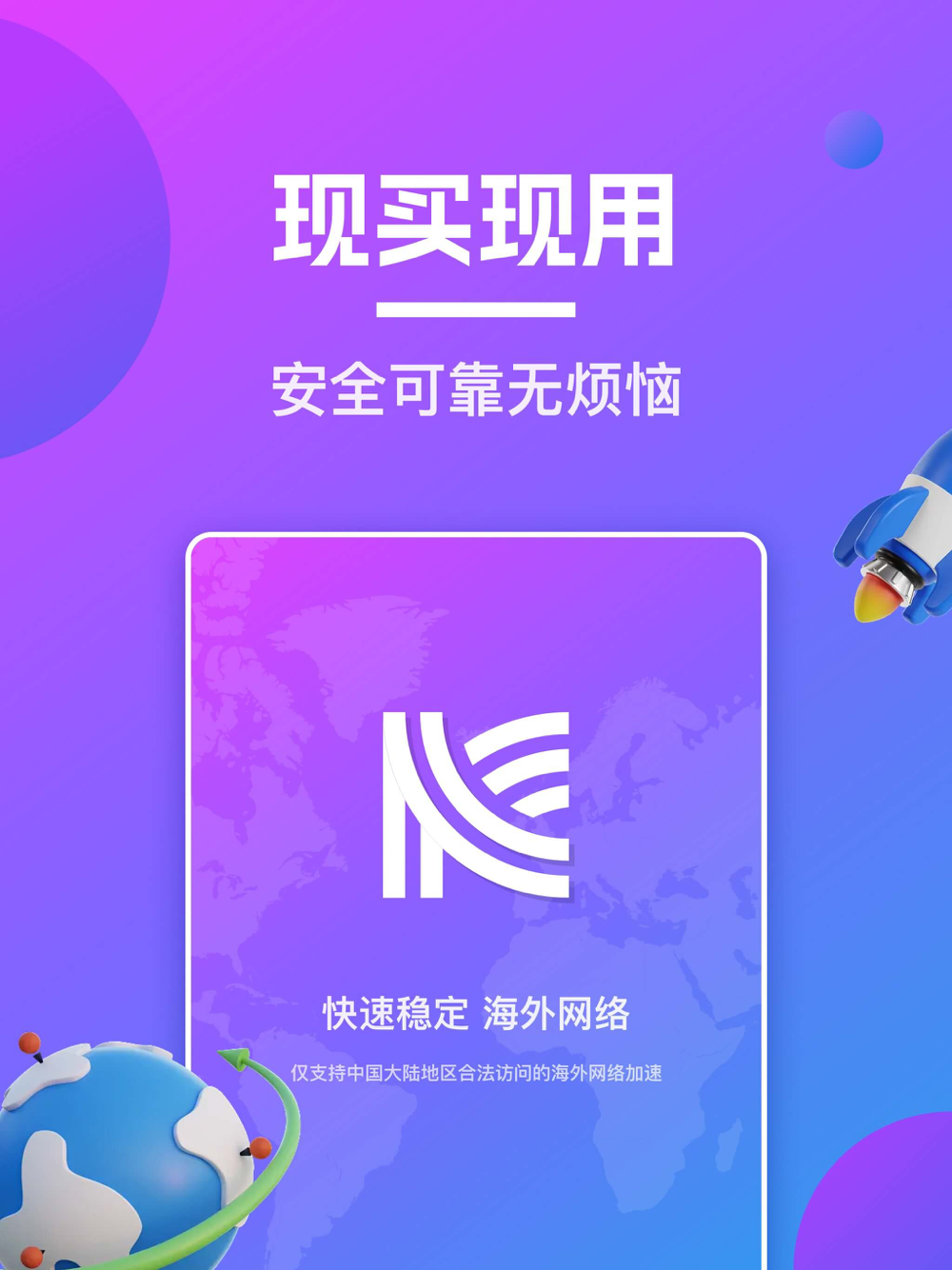 注意:本产品仅支持对当地法律合法访问的进行海外网络加速,请勿用于非法目的。