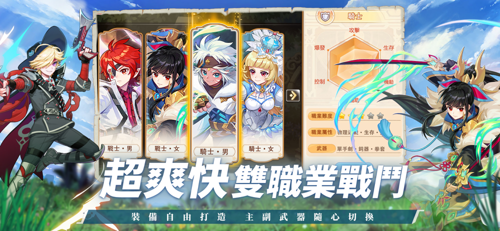 收錄戰士、遊俠、法師、騎士四大經典職業,達到等級后可以進行轉職,戰鬥力將會突飛猛進!到底是轉“聖殿騎士”還是“武術家”呢?你想好了嗎?