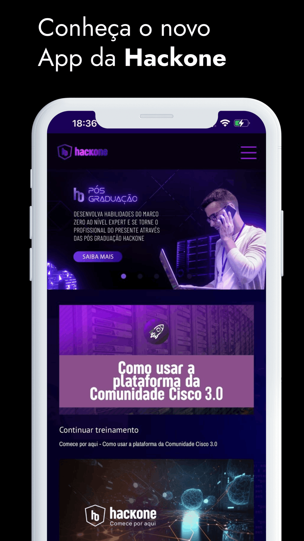 Com nosso app, nossos alunos poderão acompanhar seus cursos, e assistir materiais exclusivos da Hackone. Somos a maior plataforma para a formação de especialistas em infraestrutura em língua portuguesa do mundo.