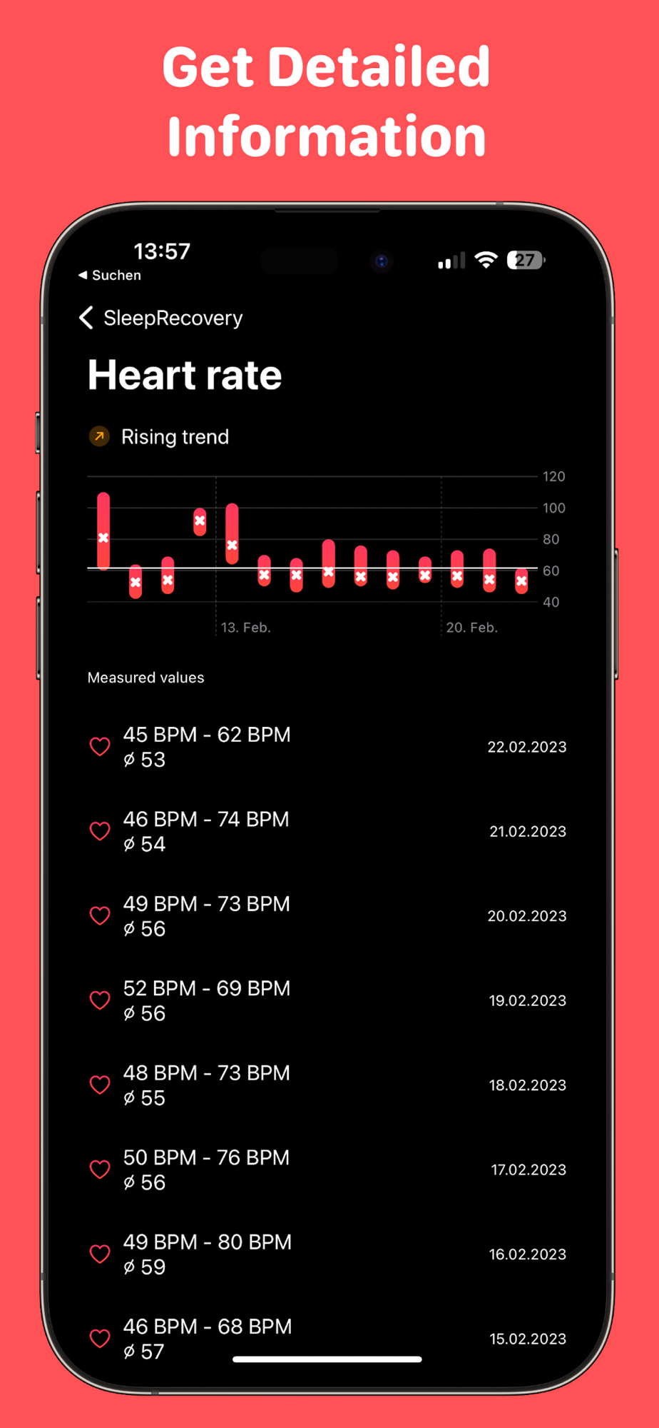 SleepRecovery uses the default Health app on your iPhone to view your existing data data. Therefore, SleepRecovery will ask you for read access to your data (Sleep, Heart rate, Resting heart rate, Respiratory rate and Wrist temperature on select Apple Watch models).