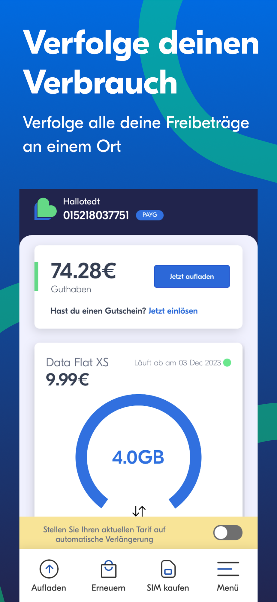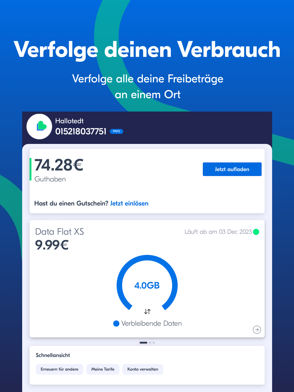 - Detaillierter Verlauf der Anrufe, der aktivierten Pakete, der Datennutzung und mehr