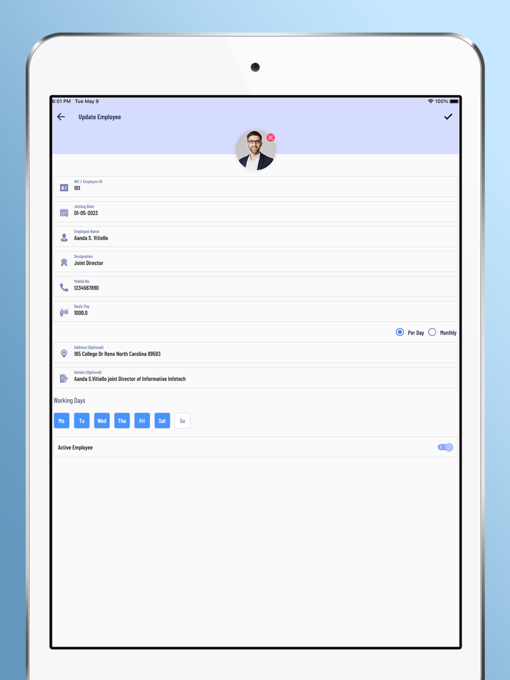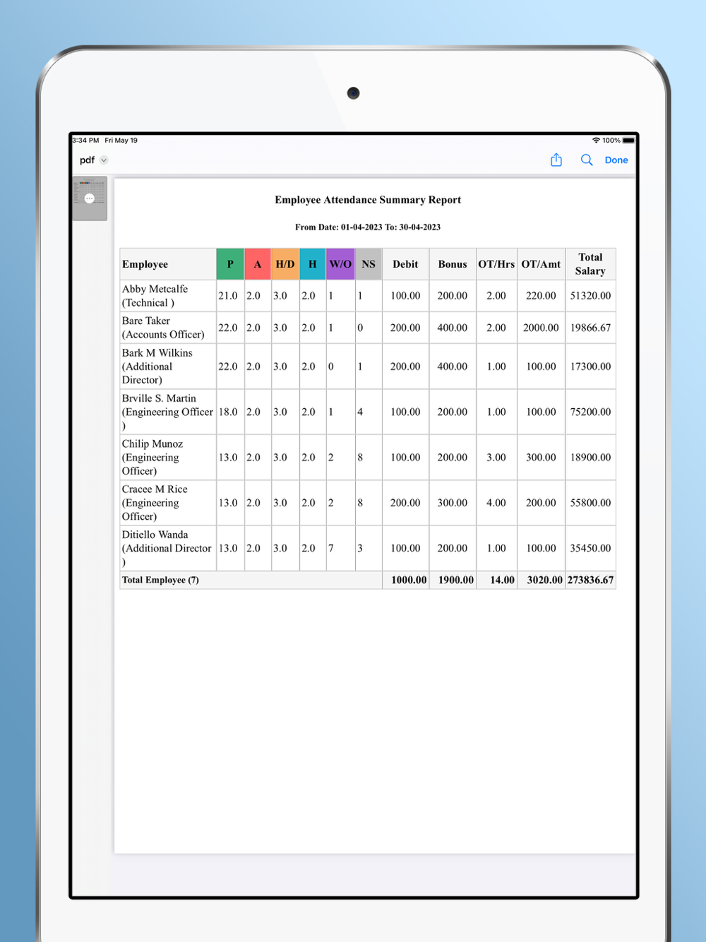 • Free version of app limits to Manage Employees, Backup Restore data, Summary Report and Advertisements. For increase limit you have to buy subscriptions details are mentions below.